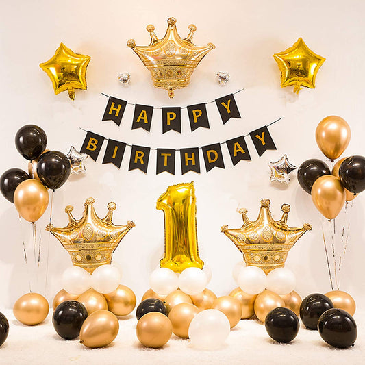 Blue And Gold First Happy Birthday Banner Decorations Combo- 56Pcs Set Kit