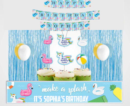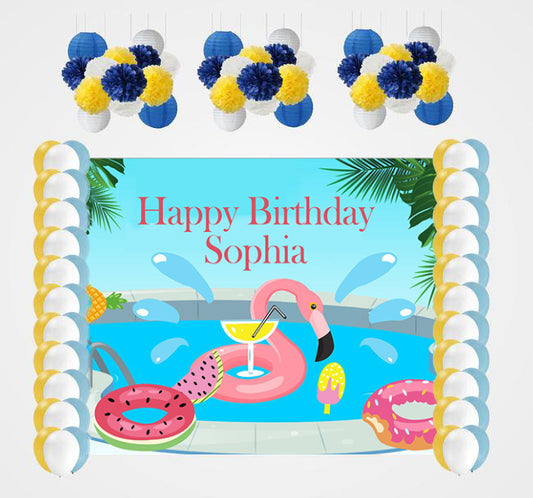 Pool Party Birthday Combo Kit with Backdrop & Decorations