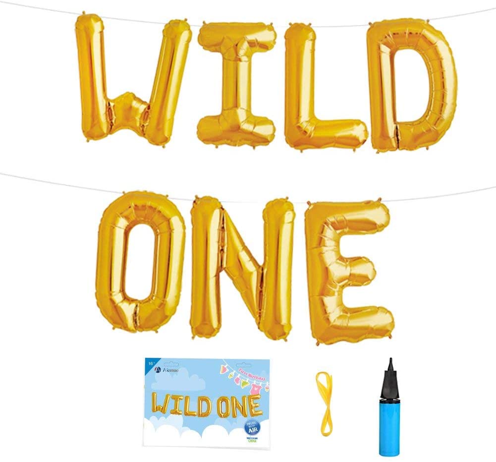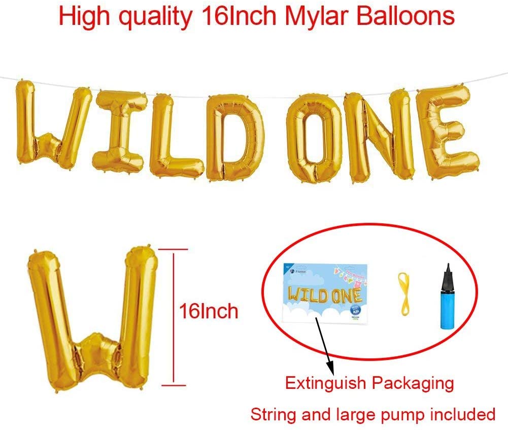 - Package Includes -7 Pc WILD ONE letters and ribbon. 1 Balloon Pimp To blow Balloons. Perfect addition to your first birthday .