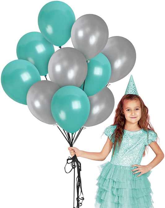 Metallic Balloons 9 Inch Thick Green And Silver Latex Balloon For Birthday, Anniversary Parties.