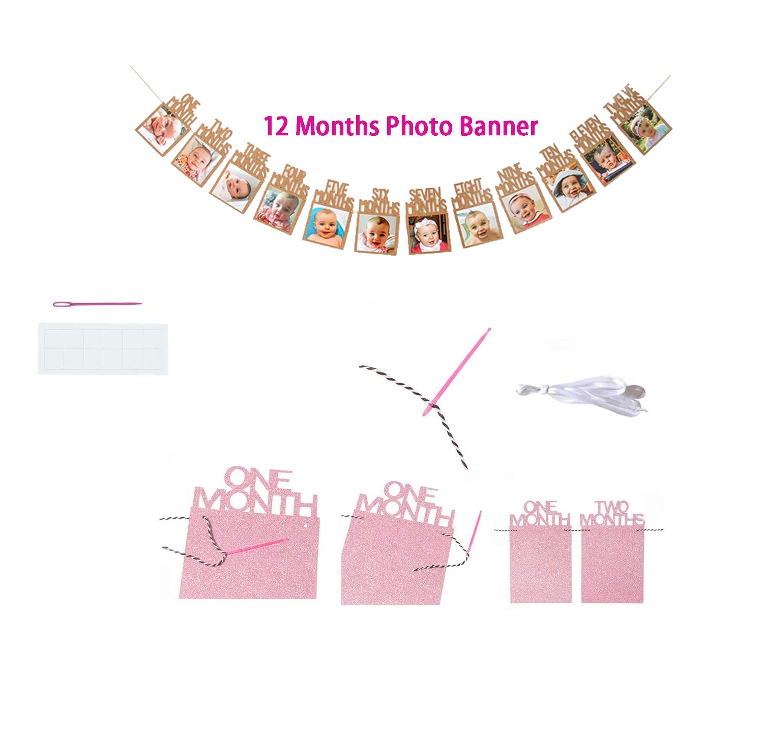 - Package includes: 1 No pink foil 16"inch , 1 happy Birthday Pink ,I am One Banner , 30 pc -Dark Pink , Light Pink )each -15 pc,12 months pic banner , "one" birthday burlap banner, a lovely birthday crown ,cake topper and 4 pom pom pink and dark pink .2 curtain pink and 5 pc silver confetti.