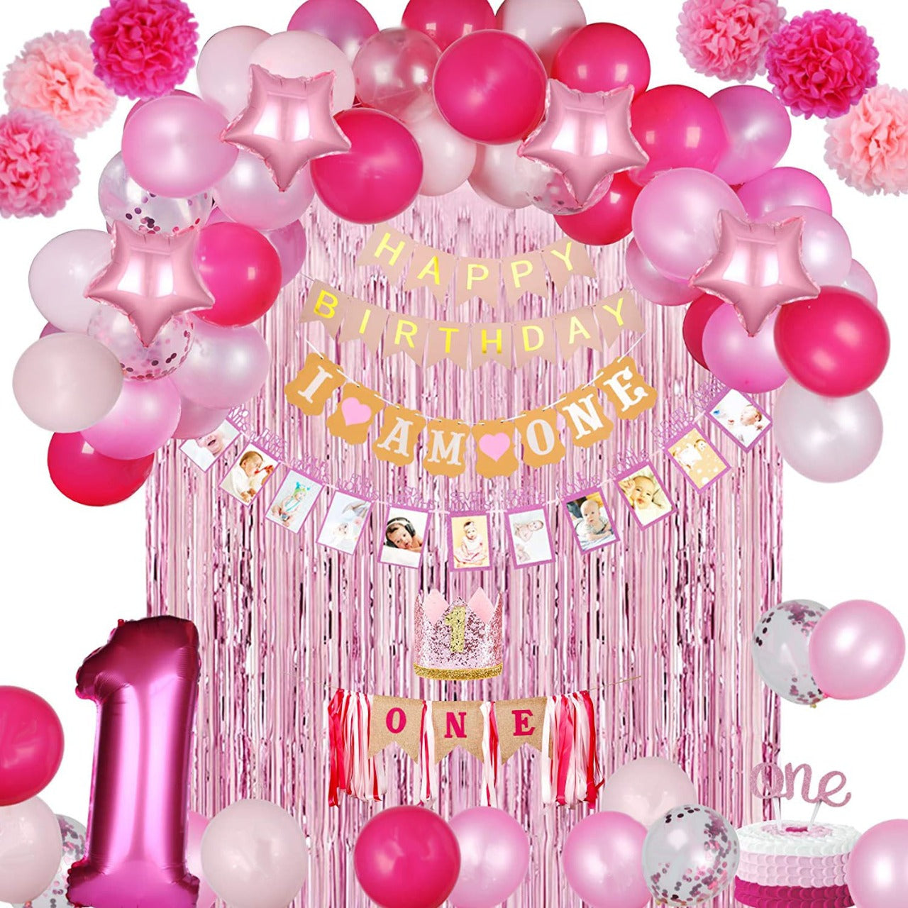 - Our First Birthday Decorations Girl Set is created with the mission to leave every baby girl with beautiful memories Suitable for 1st birthday party. This birthday party surprise will help u make wonderful first birthday!