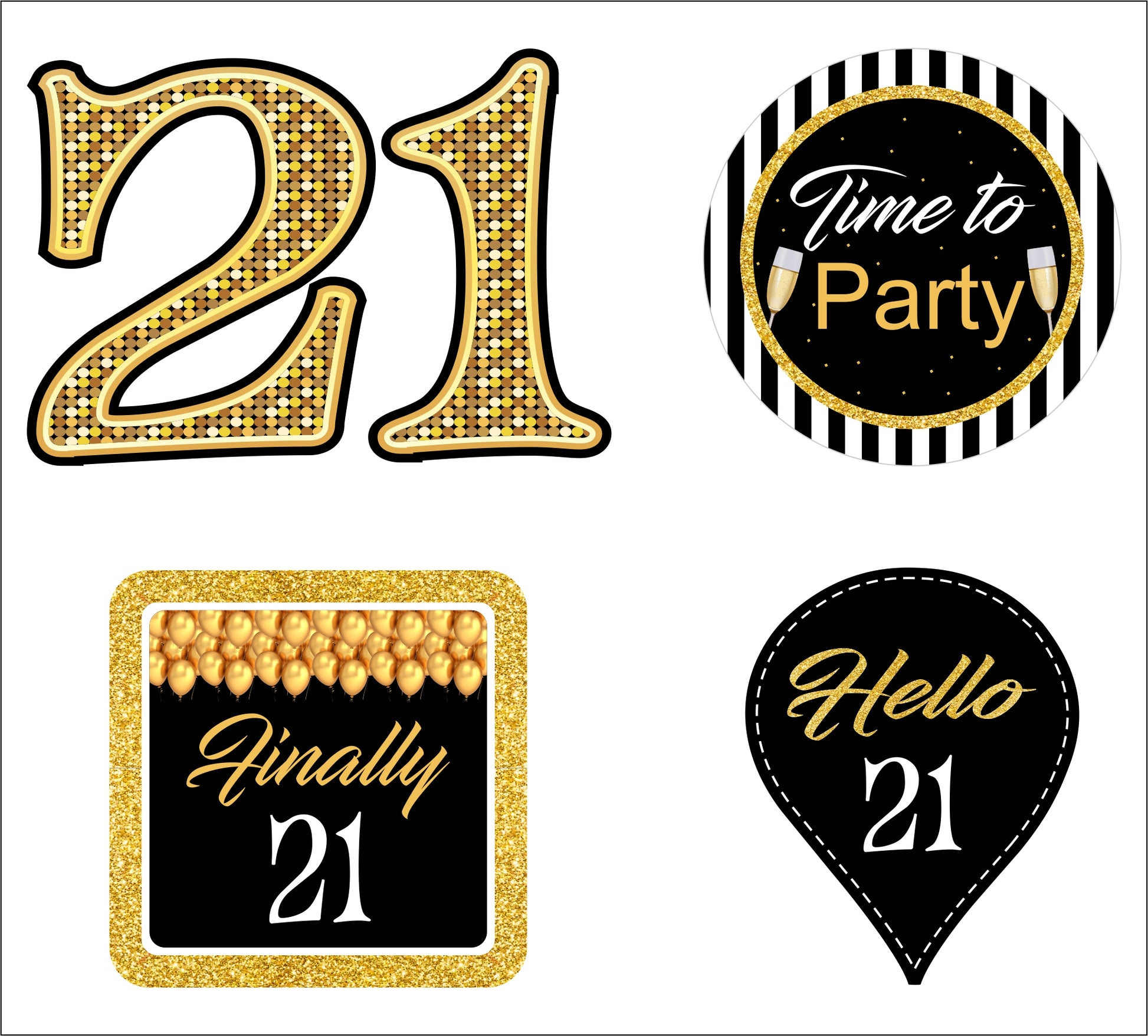 21st Birthday Cup Cake Topper specially designed with 4 different designs.