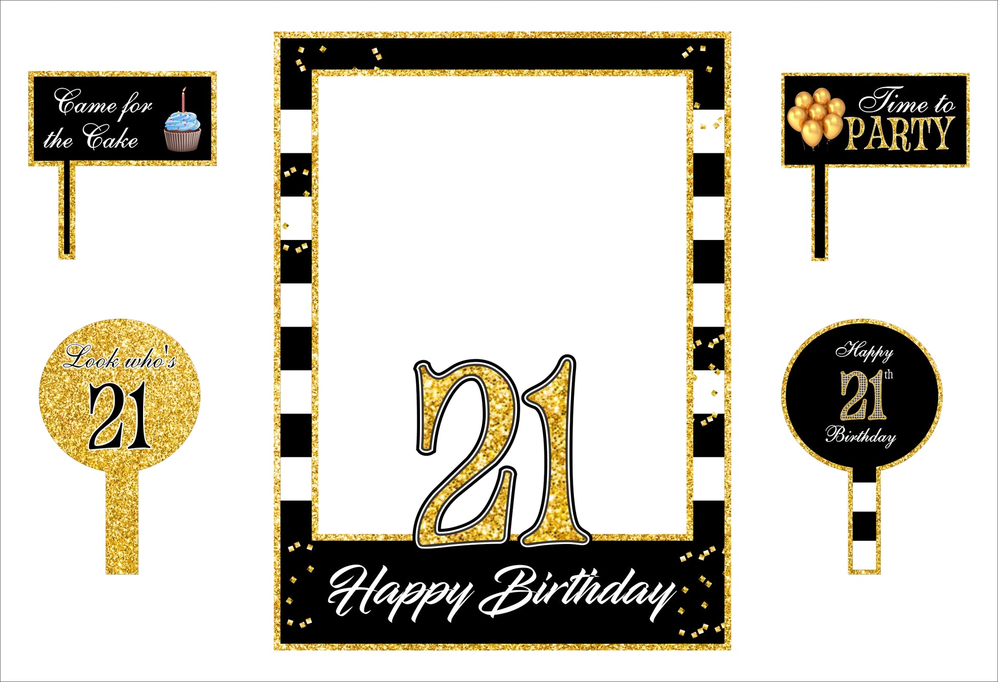 21st Birthday Party Selfie Photo Booth Frame & Props