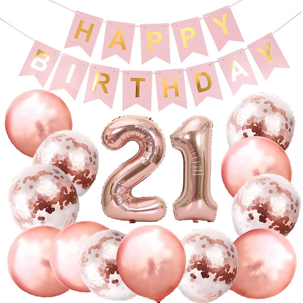 - Package include13pcs happy birthday letters cards banner, 2pcs number balloons,12pcs balloons rose gold 4 rose gold confetti and 1pcs balloon ribbon.