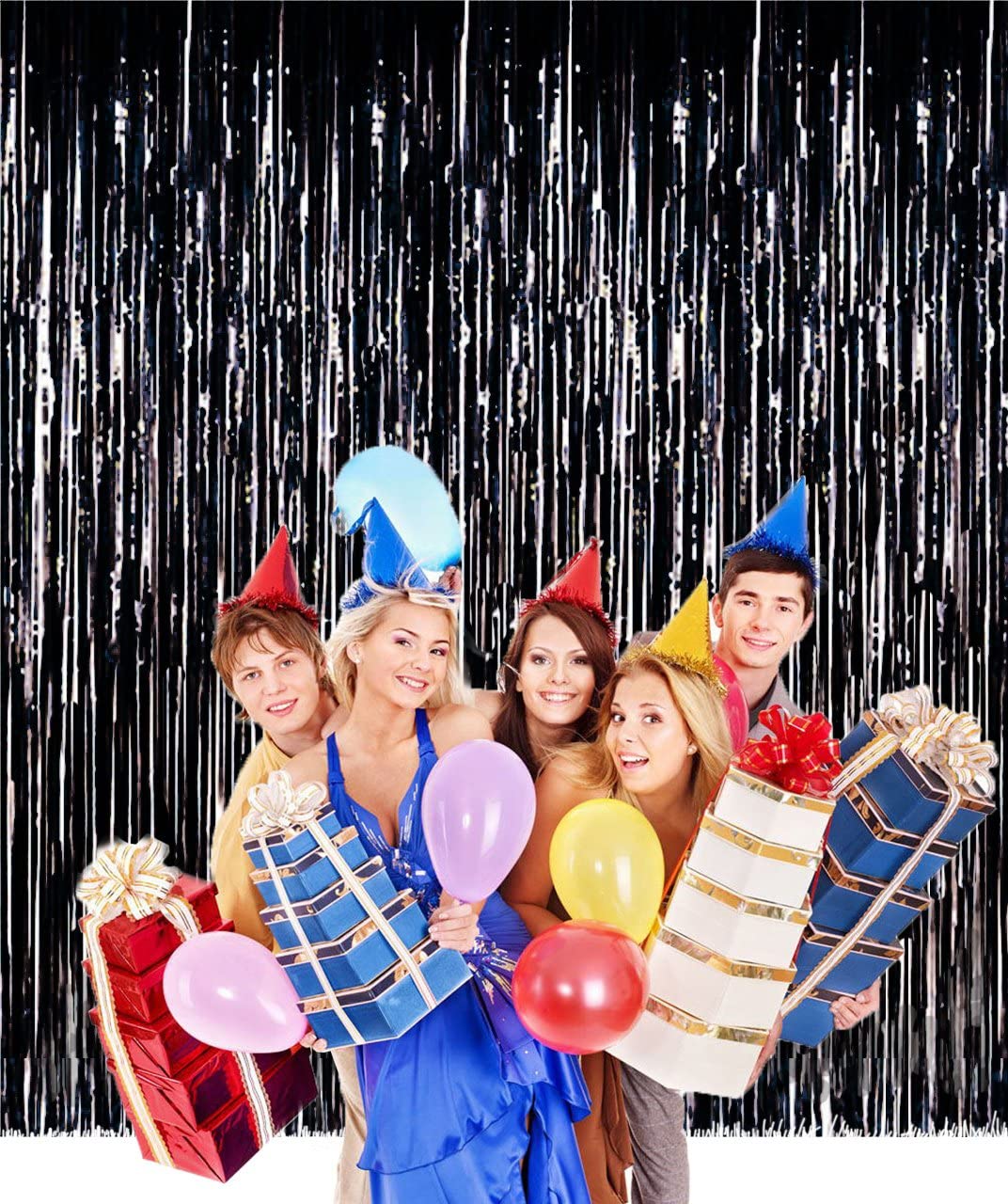 Black Metallic Tinsel Foil Fringe Curtains For Birthday Party Decorations