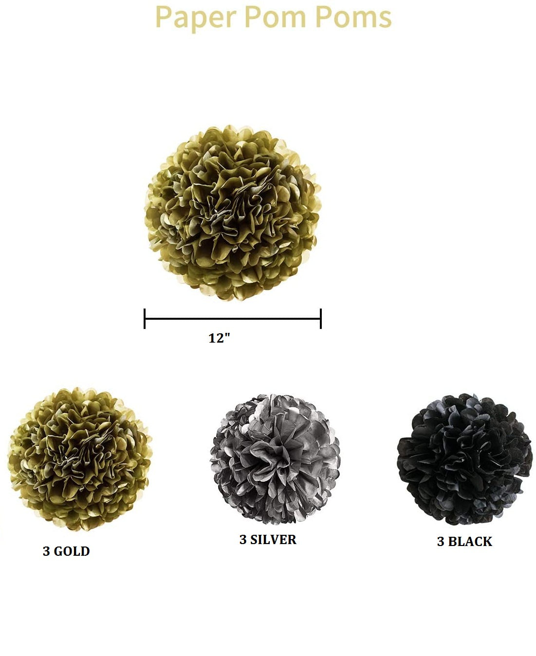 - COMPATIBLE OCCASION: Black, silver and gold birthday party decorations are awesome addition to any birthday party. Hang the banner and paper flowers on tables, walls. It is a great table settings for party. They're also fabulous to use as a photography backdrop! Lightweight, easy to hang them on the wall, above the table, in the hallway, on the tree, etc.