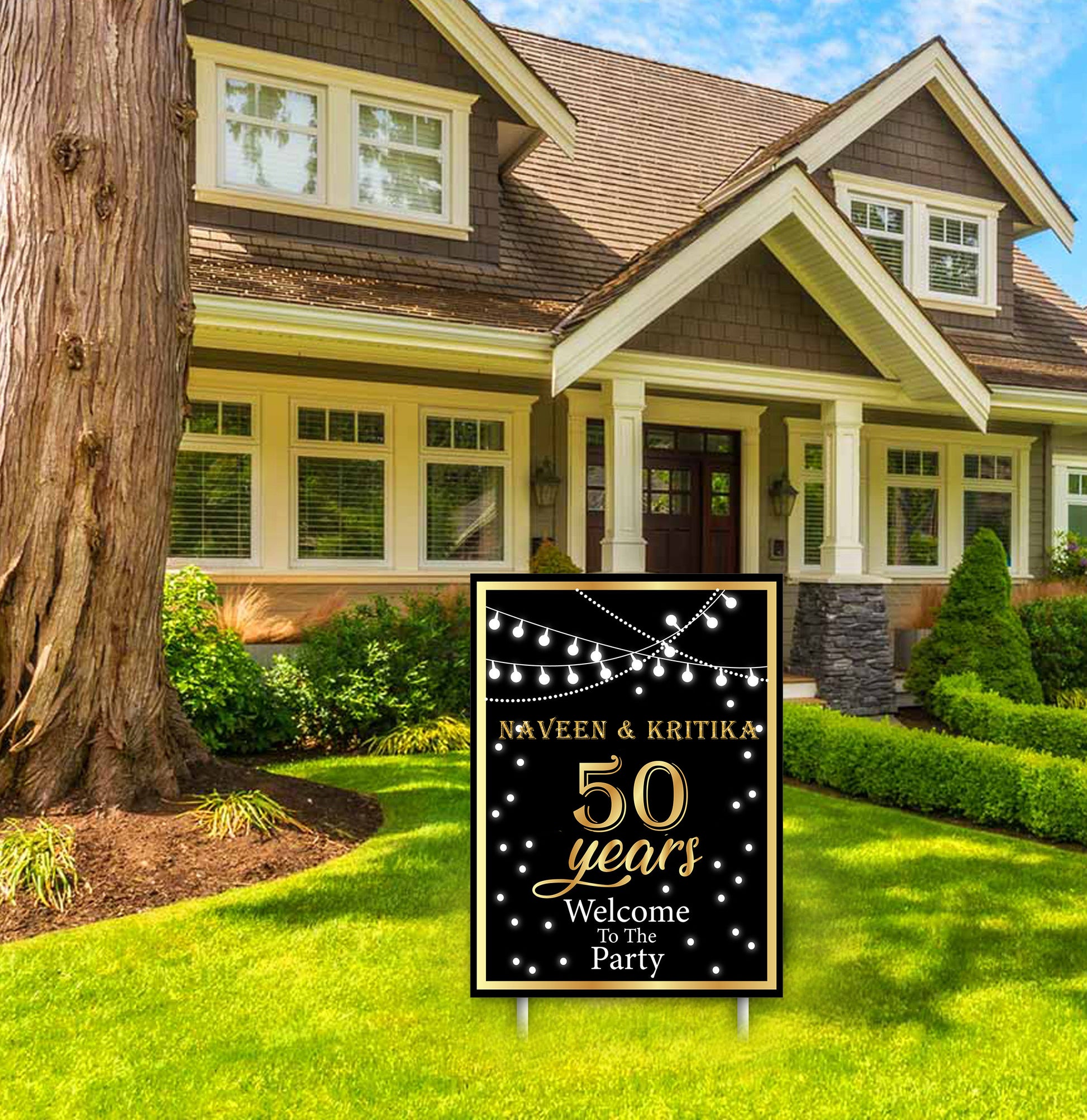 - The 50th Anniversary Welcome board sign is ideal for any home location or outside space. Welcome your friends and family members with a stunning welcome 50th Anniversary party board.