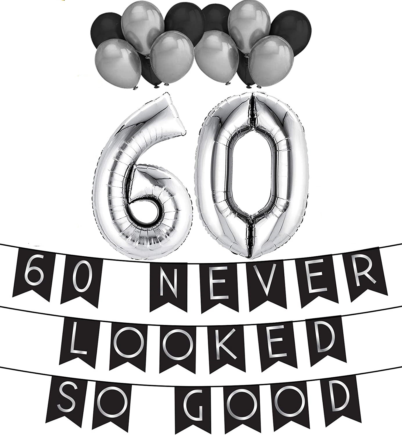 - Who said you have to grow up?! What better way to celebrate your 60th than with our hand strung, premium quality 60 NEVER LOOKED SO GOOD banner, balloon pack. This pack is the perfect decoration to add a touch of classy decor and welcome your guests to the occasion.