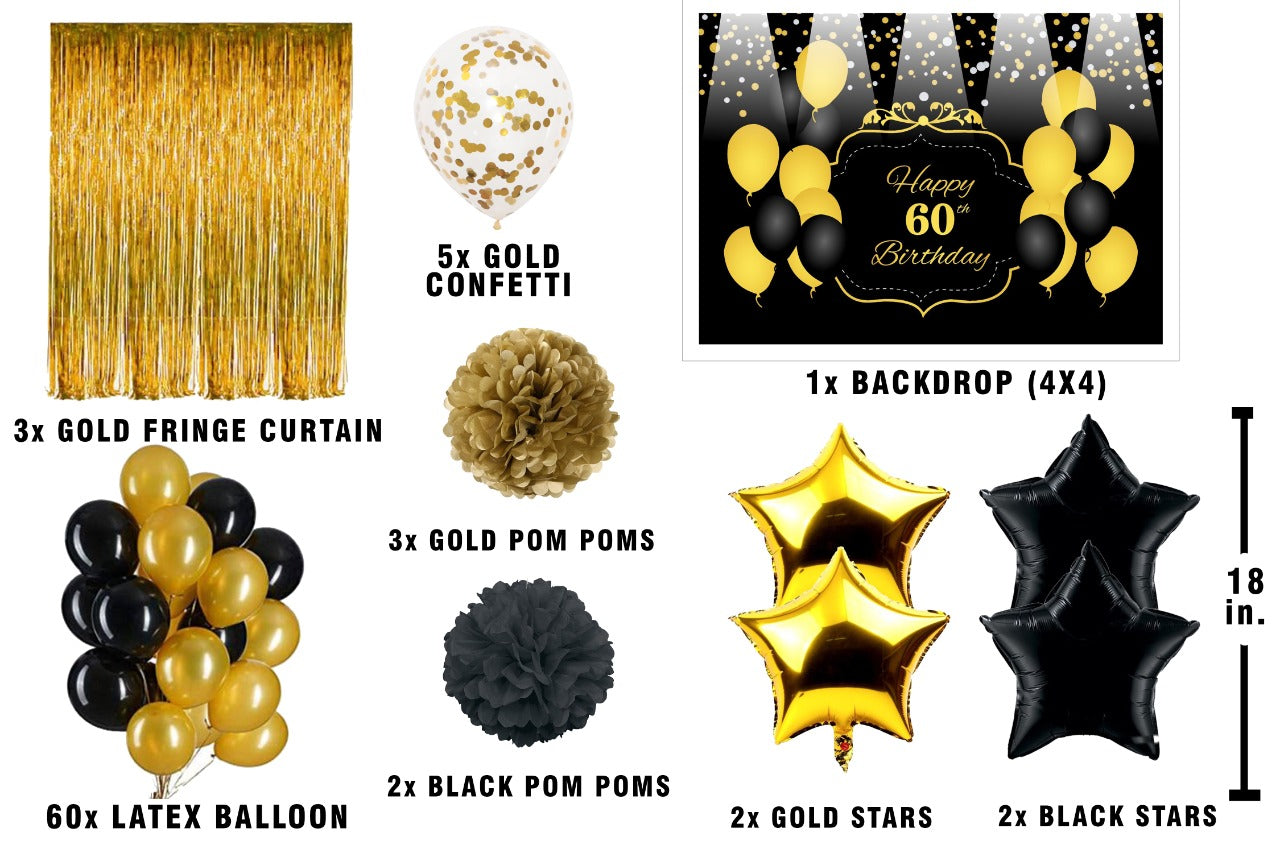 - Package includes - Backdrop-flex material light and thin, Balloons- 60 pcs Metallic 20 pc each green dark green and purple and six pc Pompom (3 pc each Purple and Green) and six pc paper Lantern (3 pc each Purple and Green). All of the kits are useful for 60th Birthday parties.