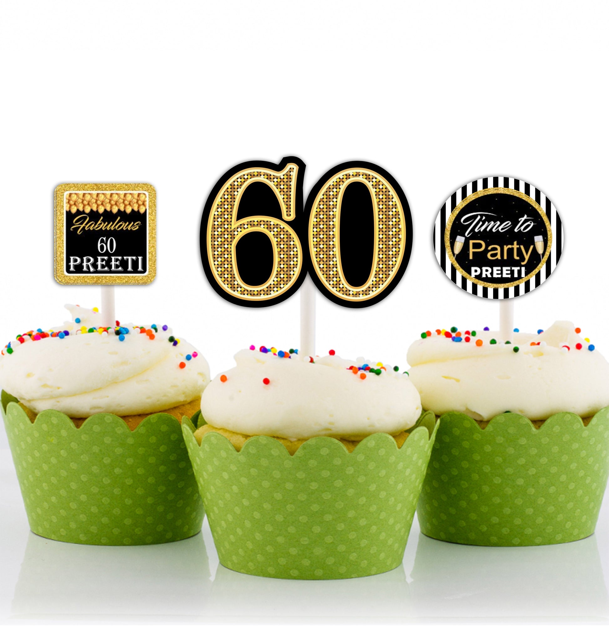 - 60th Birthday Cup Cake Topper specially designed with three different designs.