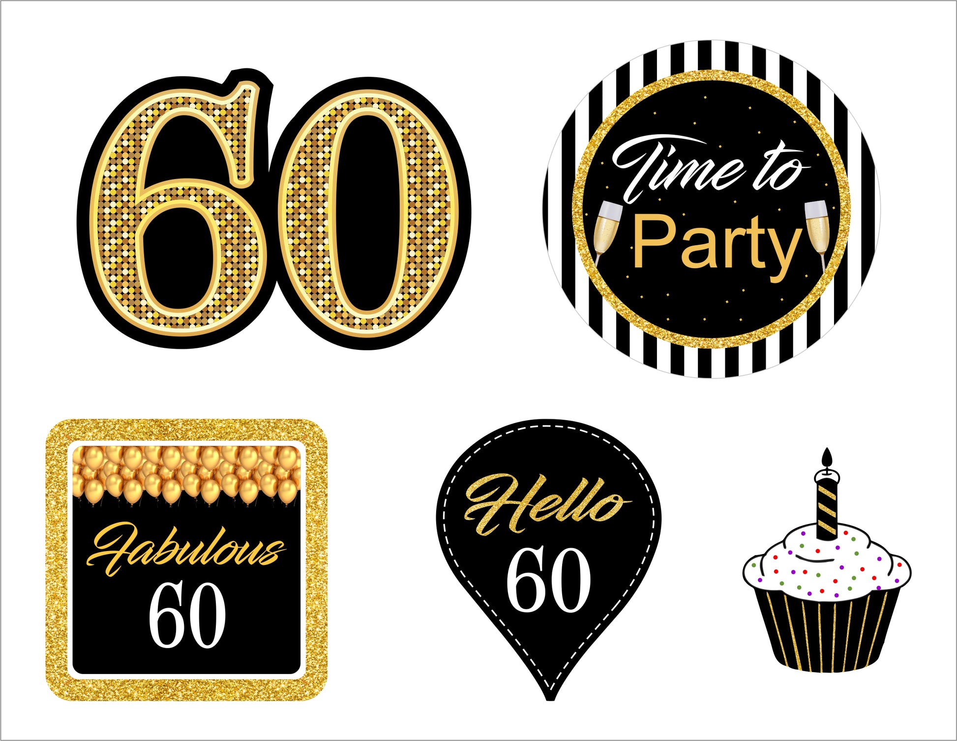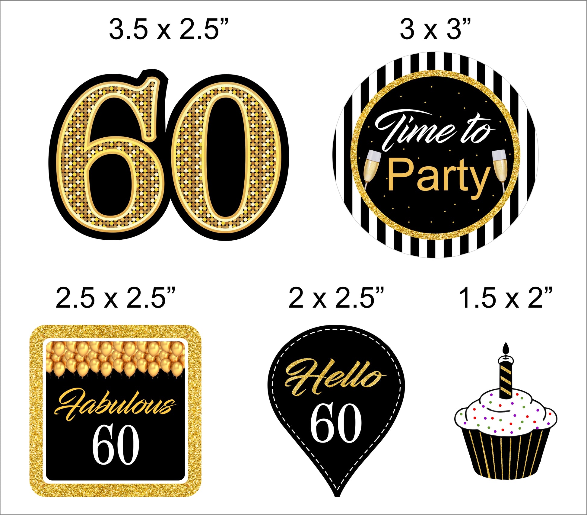 - The package includes - 24 60th Birthday paper cut-outs, 50 coordinating paper straws & a glue dot.