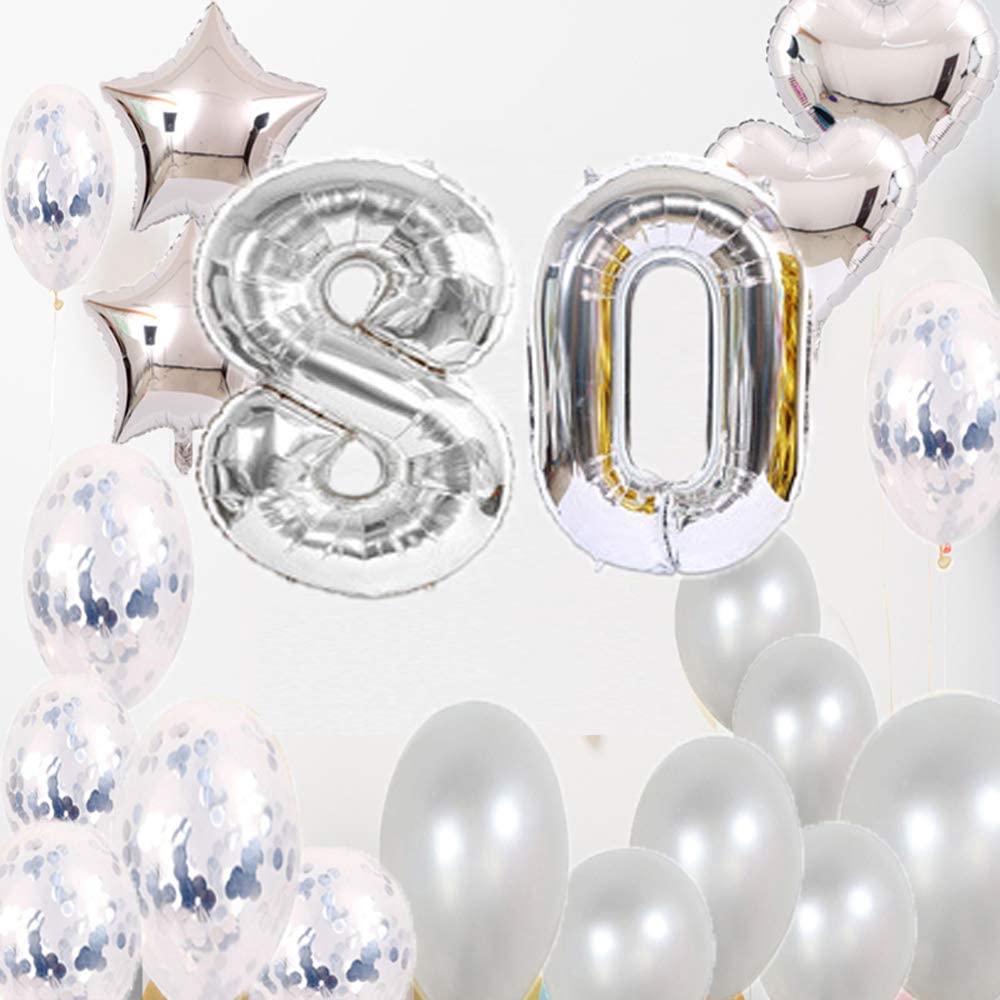- 80th Birthday Decorations : Happy birthday! Congratulations on your arriving birthday!These Large number 80 silver balloons bundle will complete your colorful birthday party supplies
