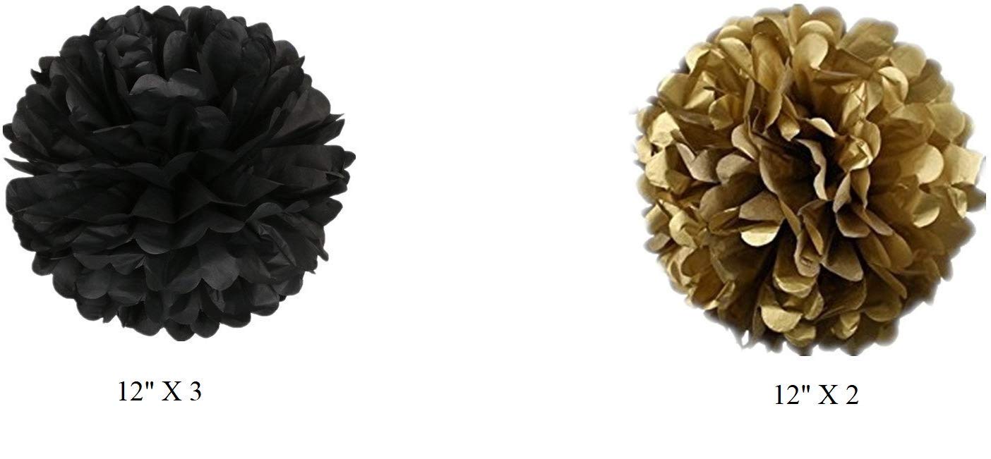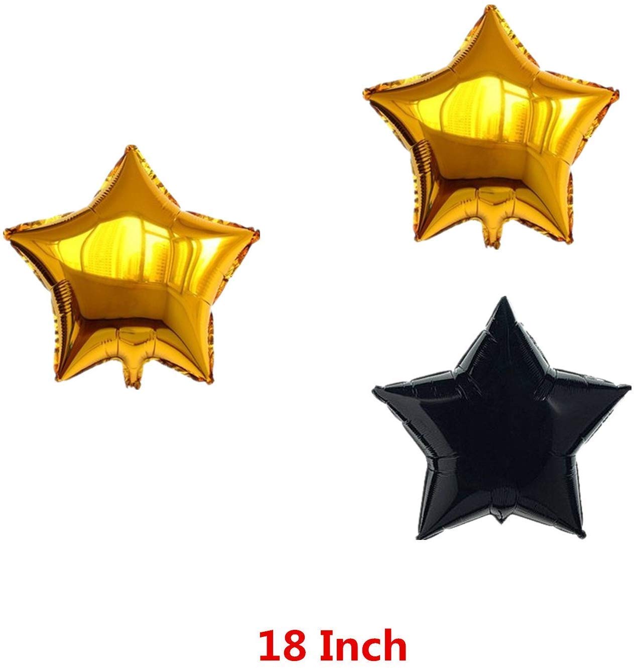 - Pack Includes: happy anniversary banner, gold foil fringe curtain x 1, paper pom poms x 5 , gold and black latex balloons x 22, star foil balloons x 3, total 32 pcs