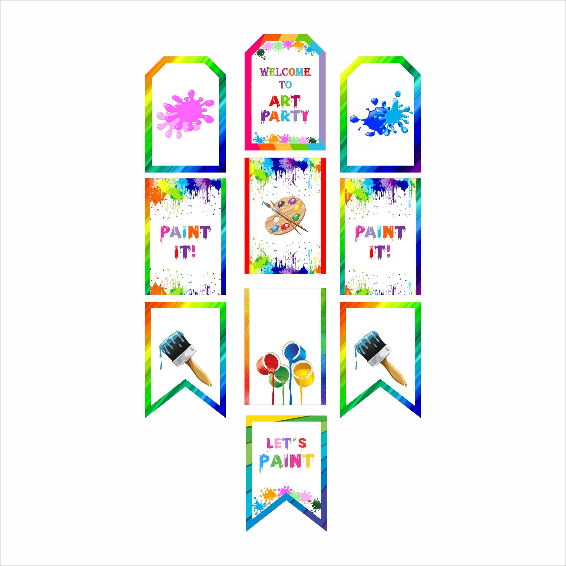 - Material: -Art and Paint Party Banner is expertly imprinted on solid card stock paper and incorporates ten classic pieces. The paper card and string come separately; simple DIY is needed.