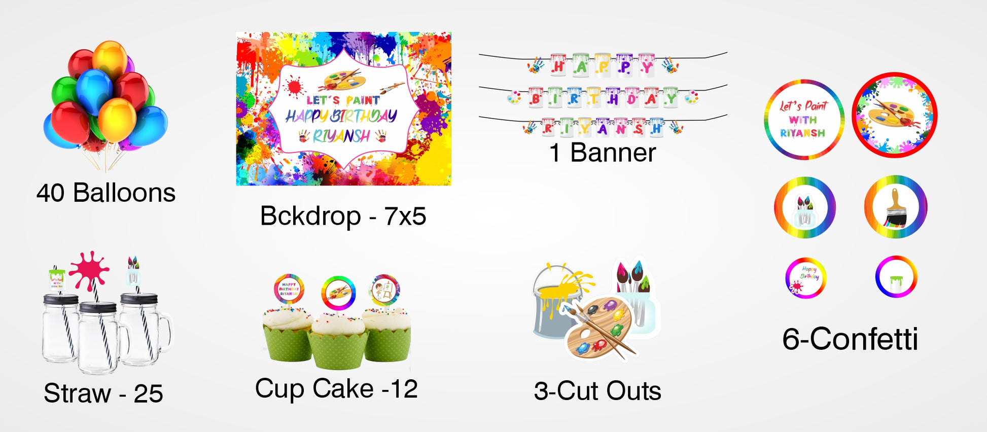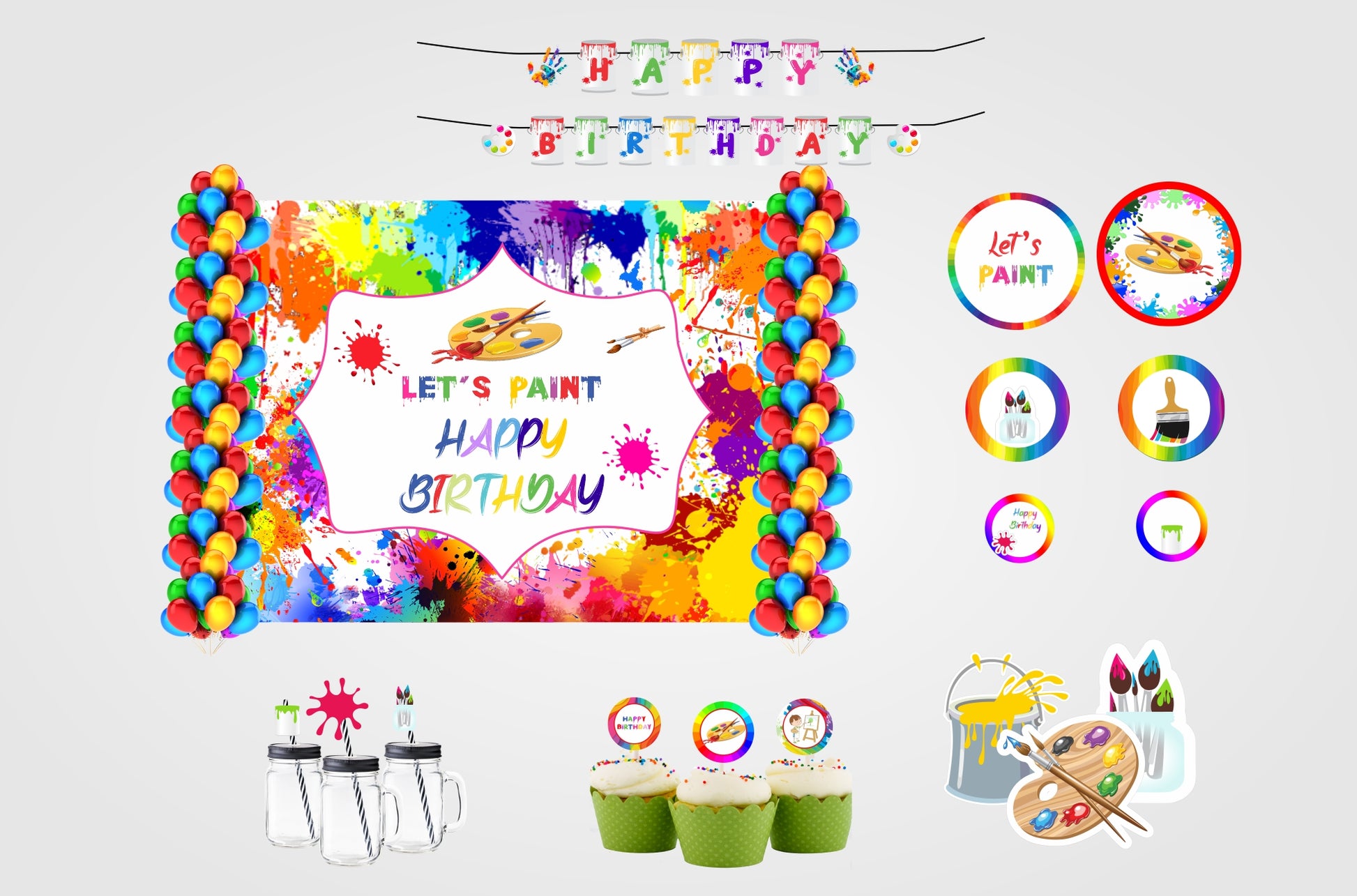 Art and Paint Theme Birthday Party Combo Kit with Backdrop & Decorations