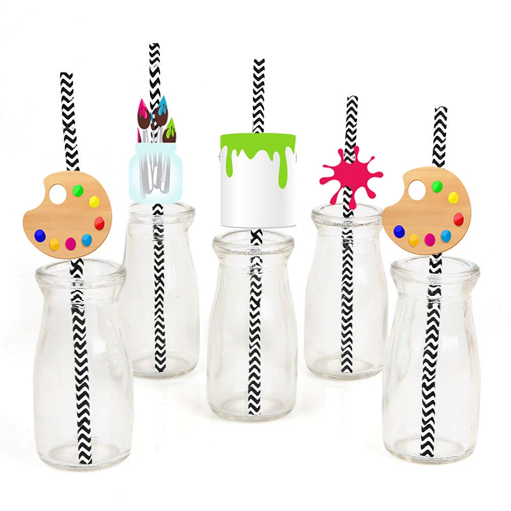 - The package includes - 24 Art and Paint theme paper cut-outs, 24 coordinating paper straws & a glue dot.