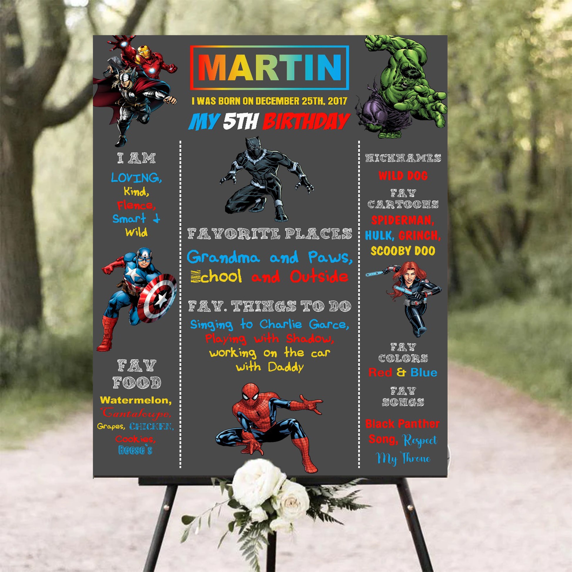 Avenger Customized Chalkboard Milestone Board for Kids Birthday Party