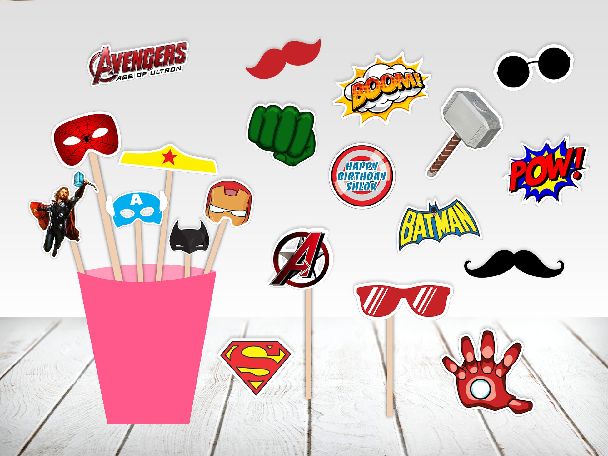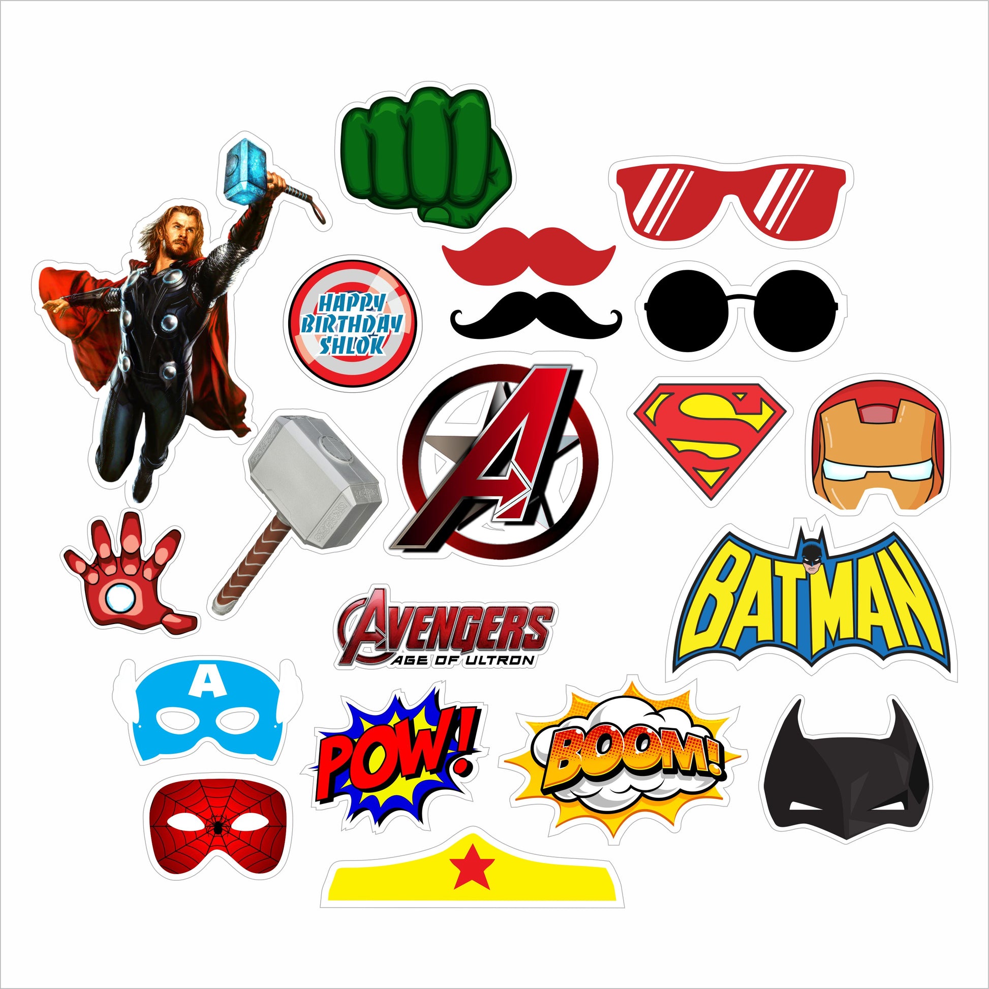 Avenger Theme Birthday Party Photo Booth Props Kit - Pack of 20