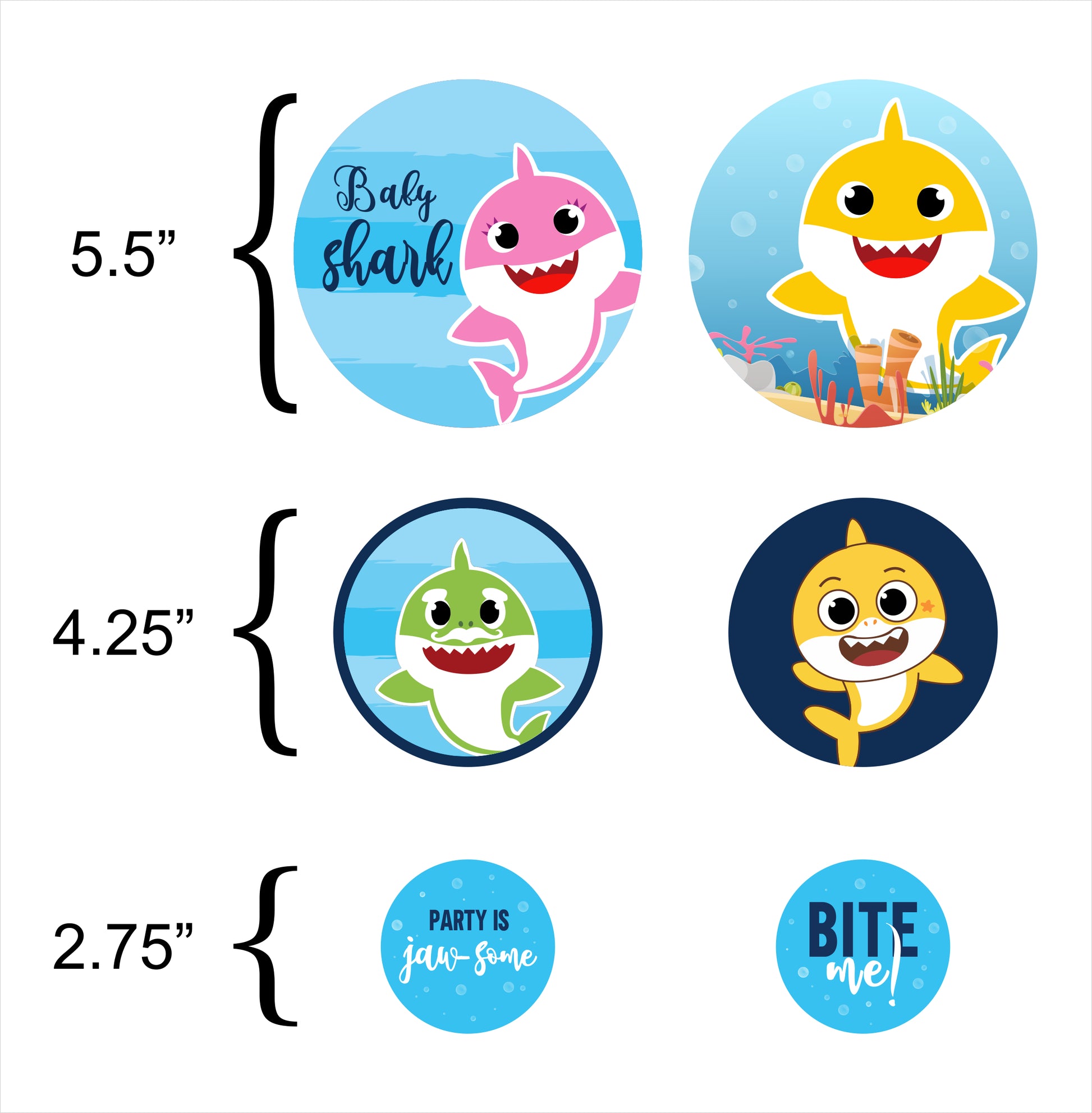 Baby Shark Theme Birthday Party table confetti can be utilized or dispersed on the tables or hung together to make a pleasant banner. You can use them as Baby Shark Party Gift tags.