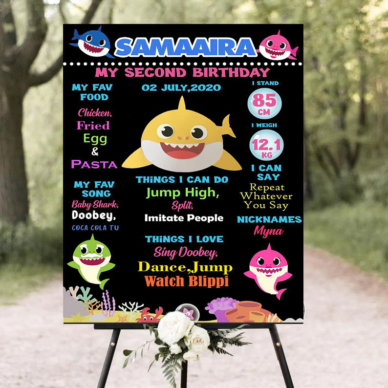 Baby Shark Customized Chalkboard/Milestone Board for Kids Birthday Party