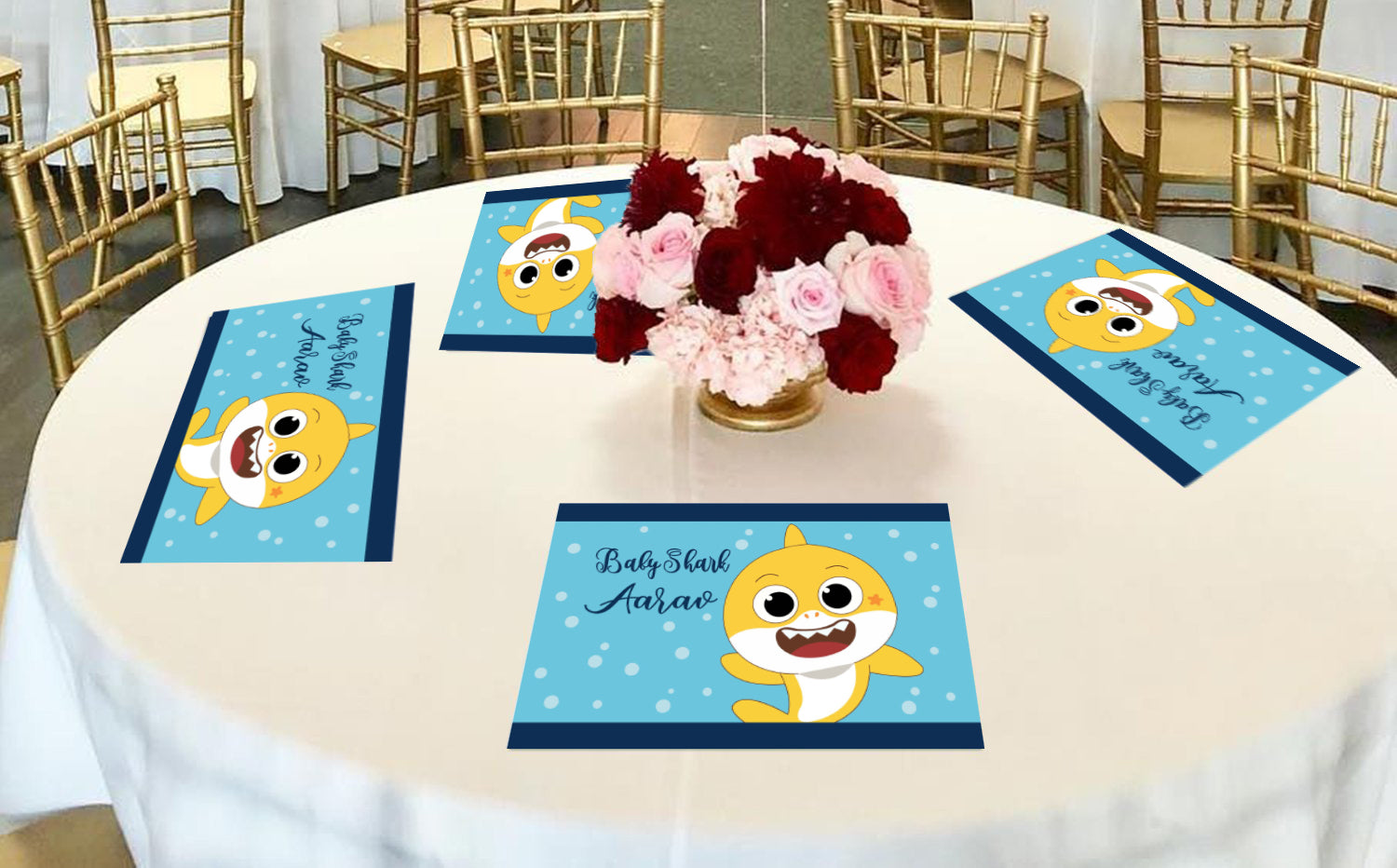 Baby Shark theme birthday party table mats will delight all of your guests. Add these themed table mats to make a remarkable table setting.