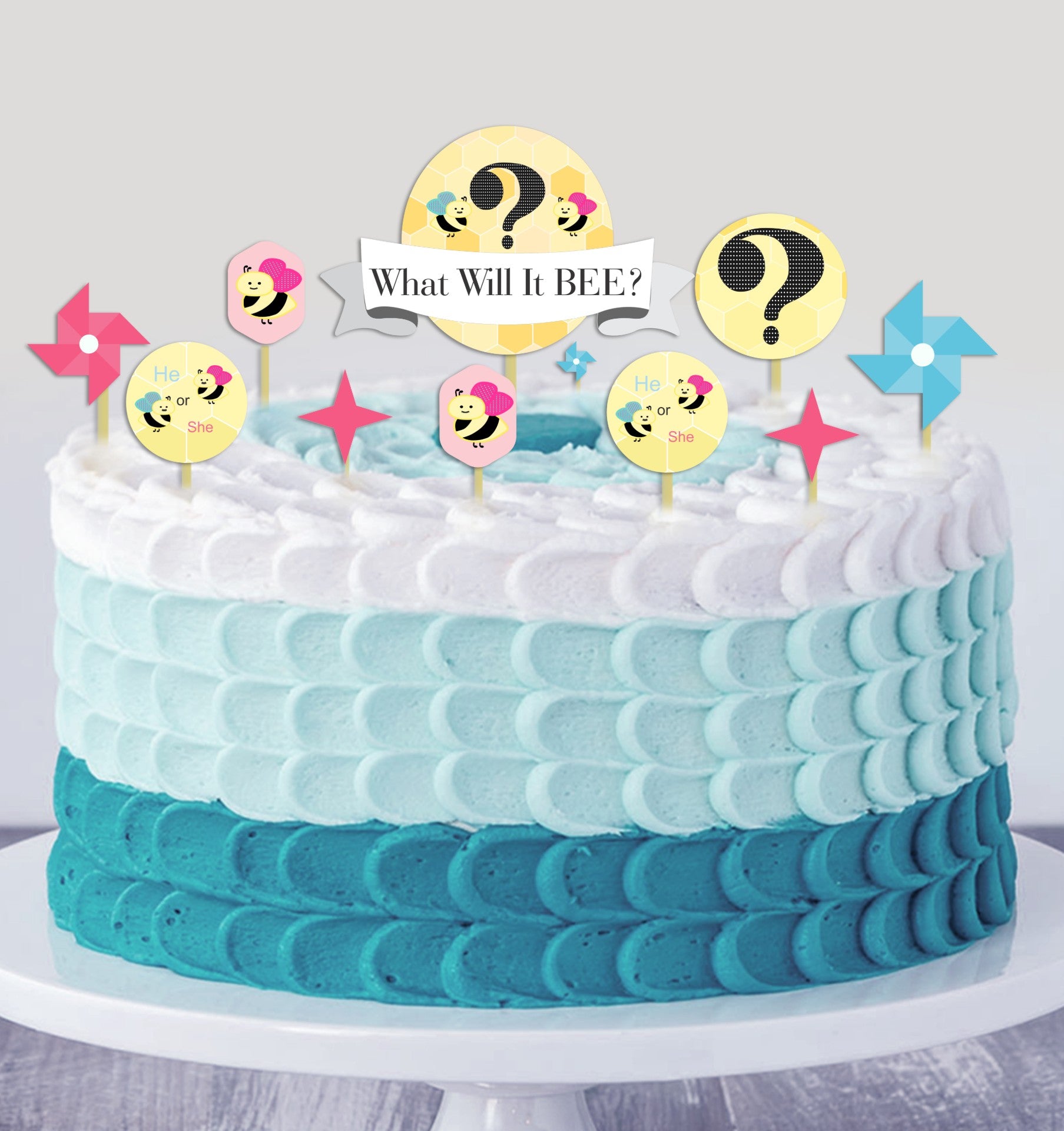 - How to use: - Include What It will BEE Cake toppers to your treat table to make an extraordinary theme cake show. Style the big cake topper with the two huge picks and add one small selection to each of the ten cut-out shapes to finish the cake embellishment.