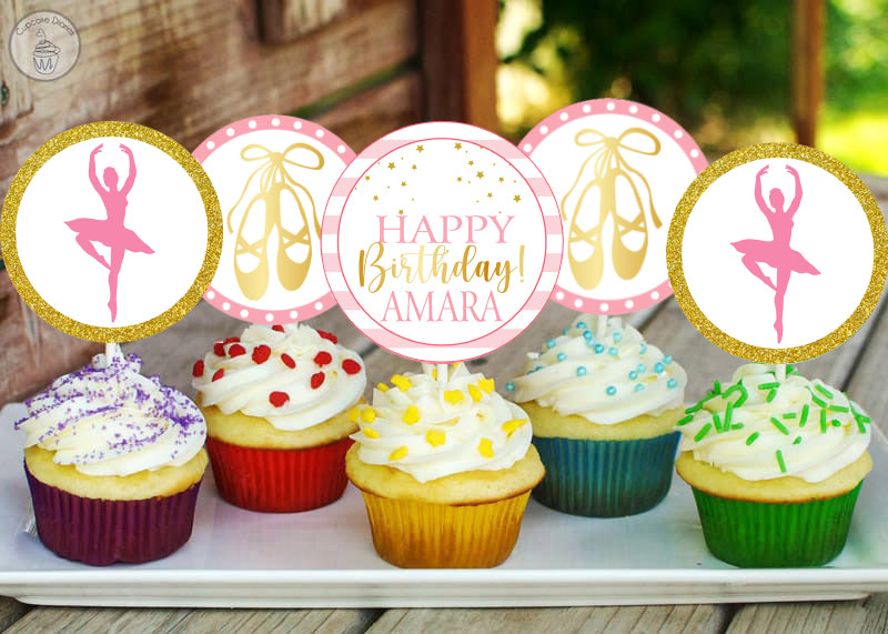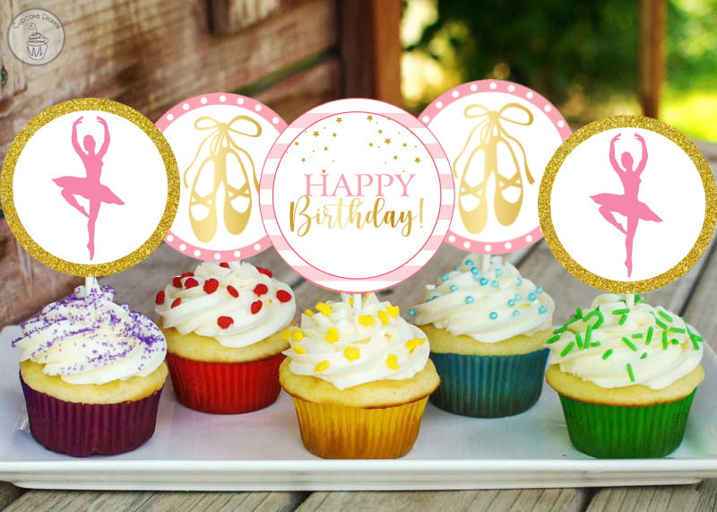 Ballerina Theme Birthday Party Cupcake Toppers for Decoration