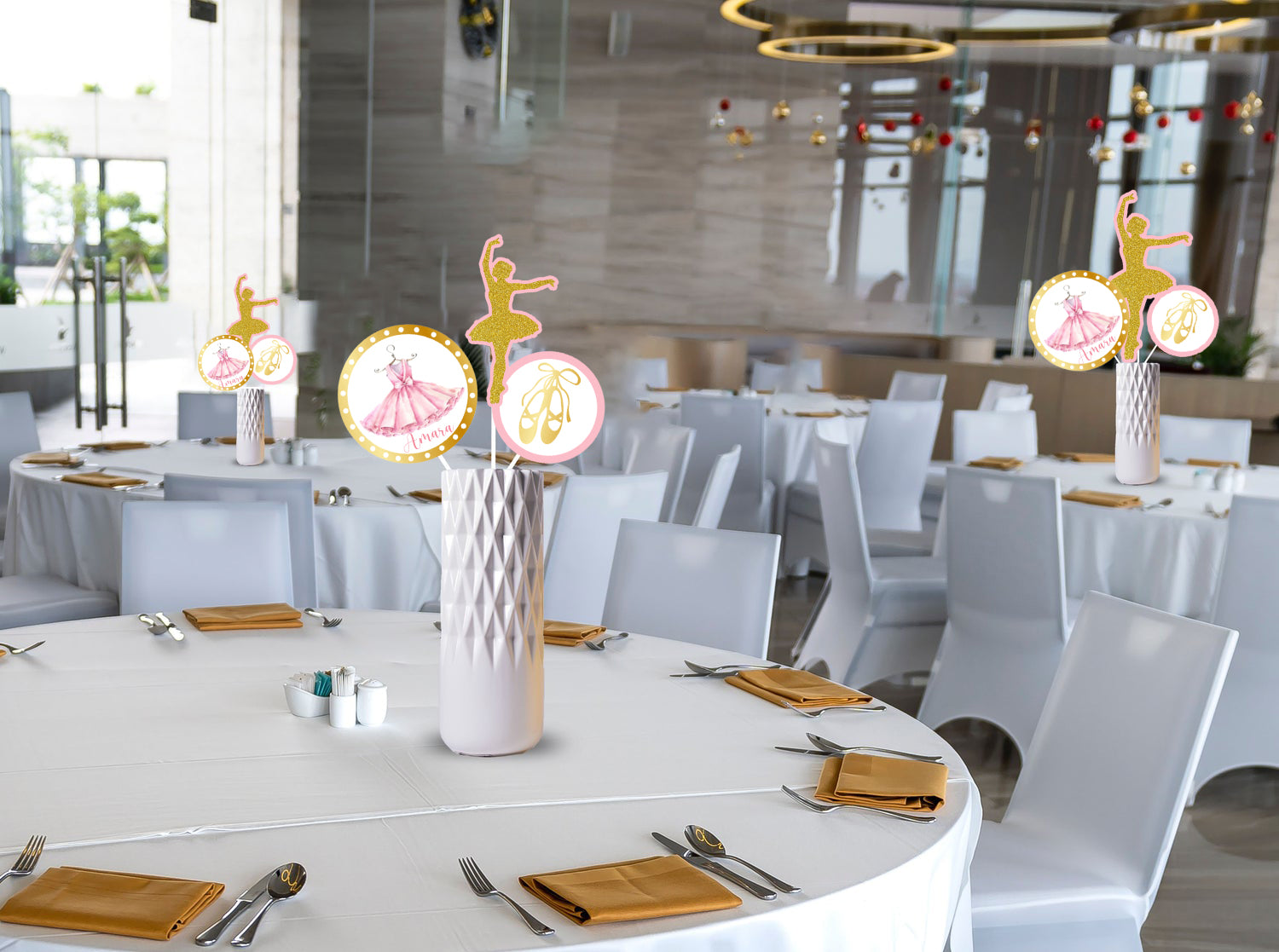 - Create easy centerpieces with our Ballerina Theme Party DIY Table Toppers, specially designed in 3 different designs.