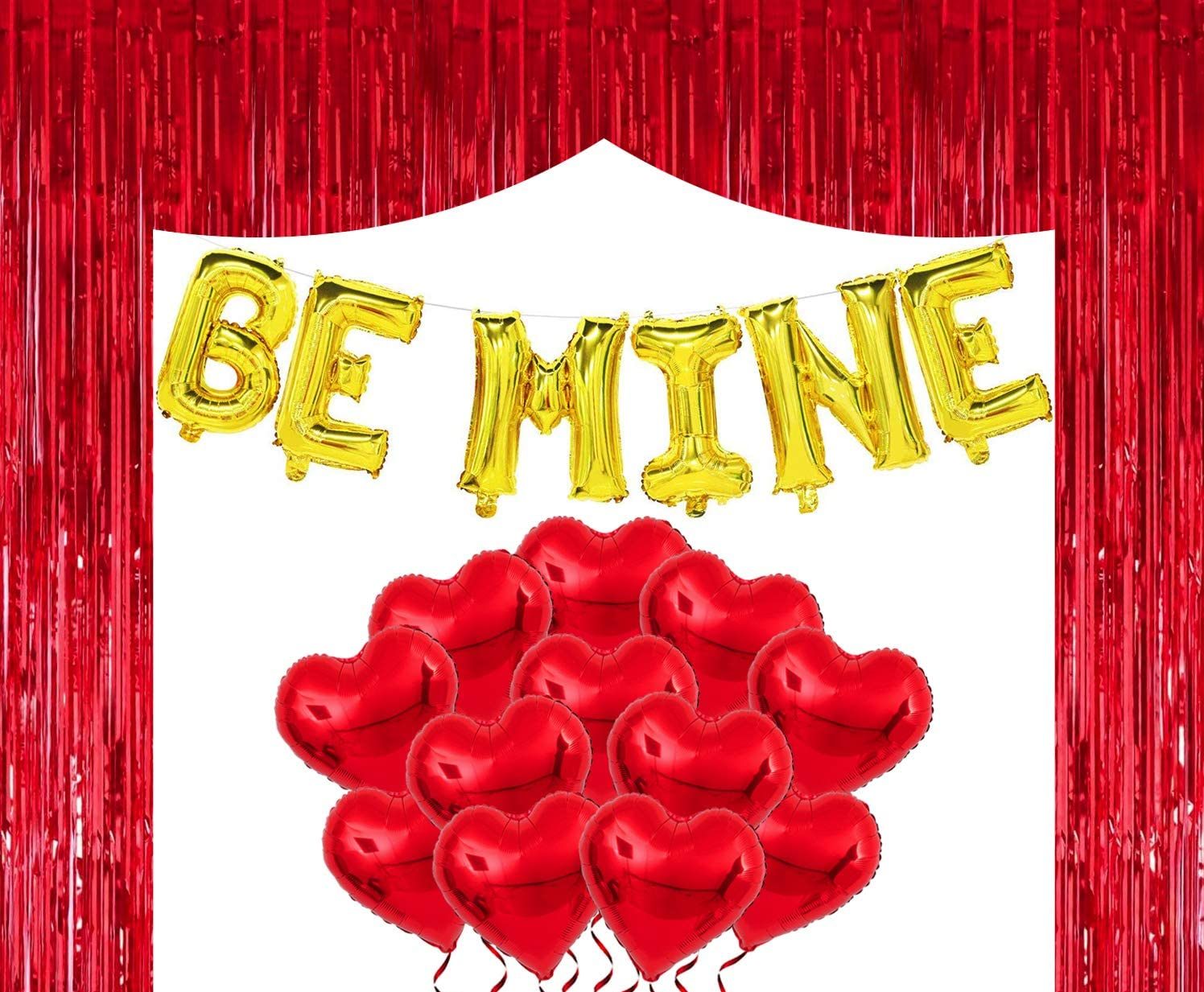 - Package includes: each pack contains 8 pieces of Valentine Combo including 1 set of "Be Mine" letters gold ,2 Red Curtain , 5 pieces of red heart foil balloons