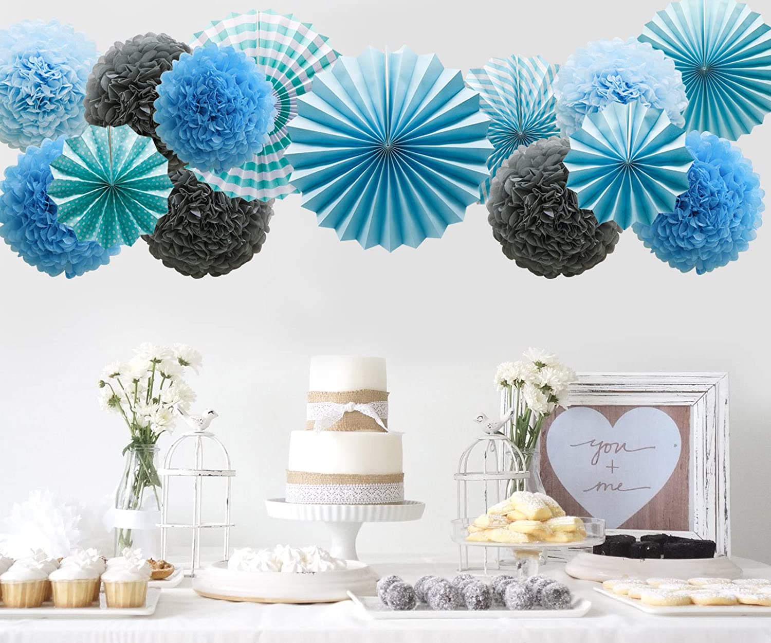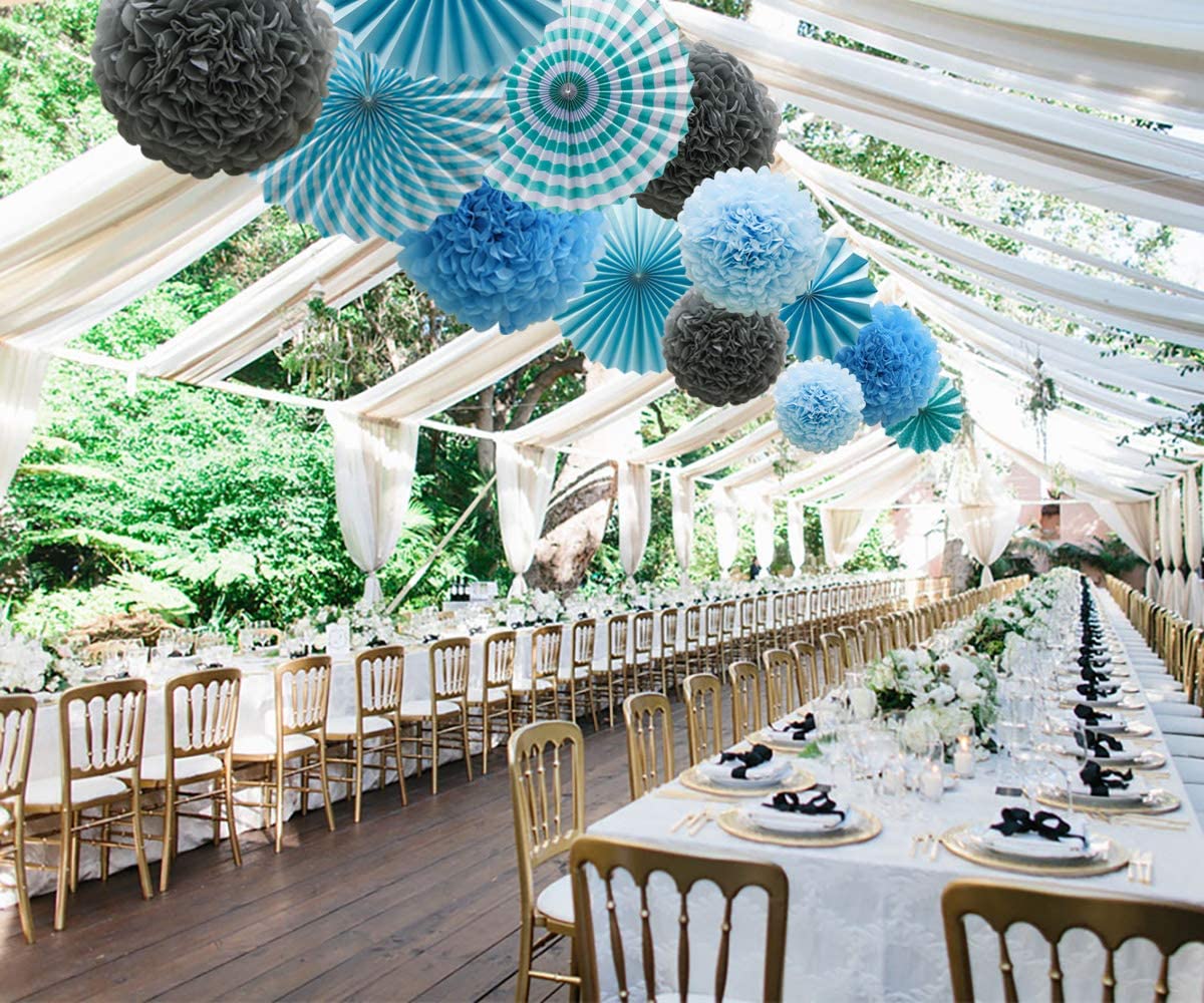 - Package Include :-12 colorful birthday party decorations includes paper fans decorations and paper pom poms ball. Blue party supplies will light your party and make high impact. Perfect for desert tables Backdrops and overall party space.