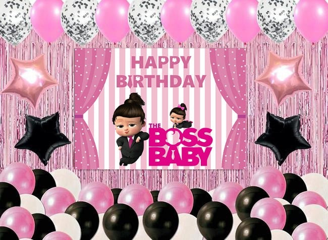 Boss Baby Girl Theme Birthday Party Decoration Kit with Backdrop & Balloons