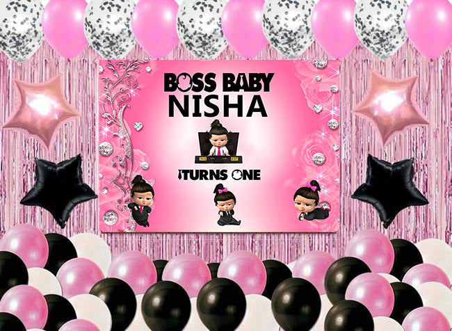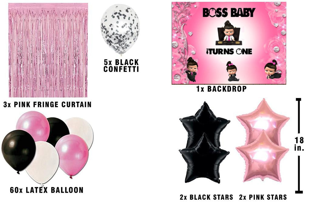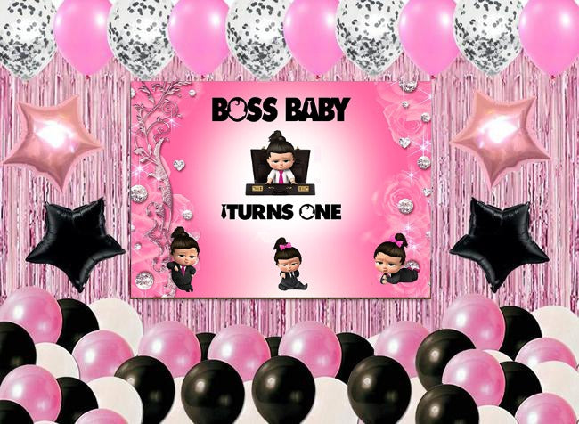 Boss Baby Girl Theme Birthday Party Decoration Kit with Backdrop & Balloons