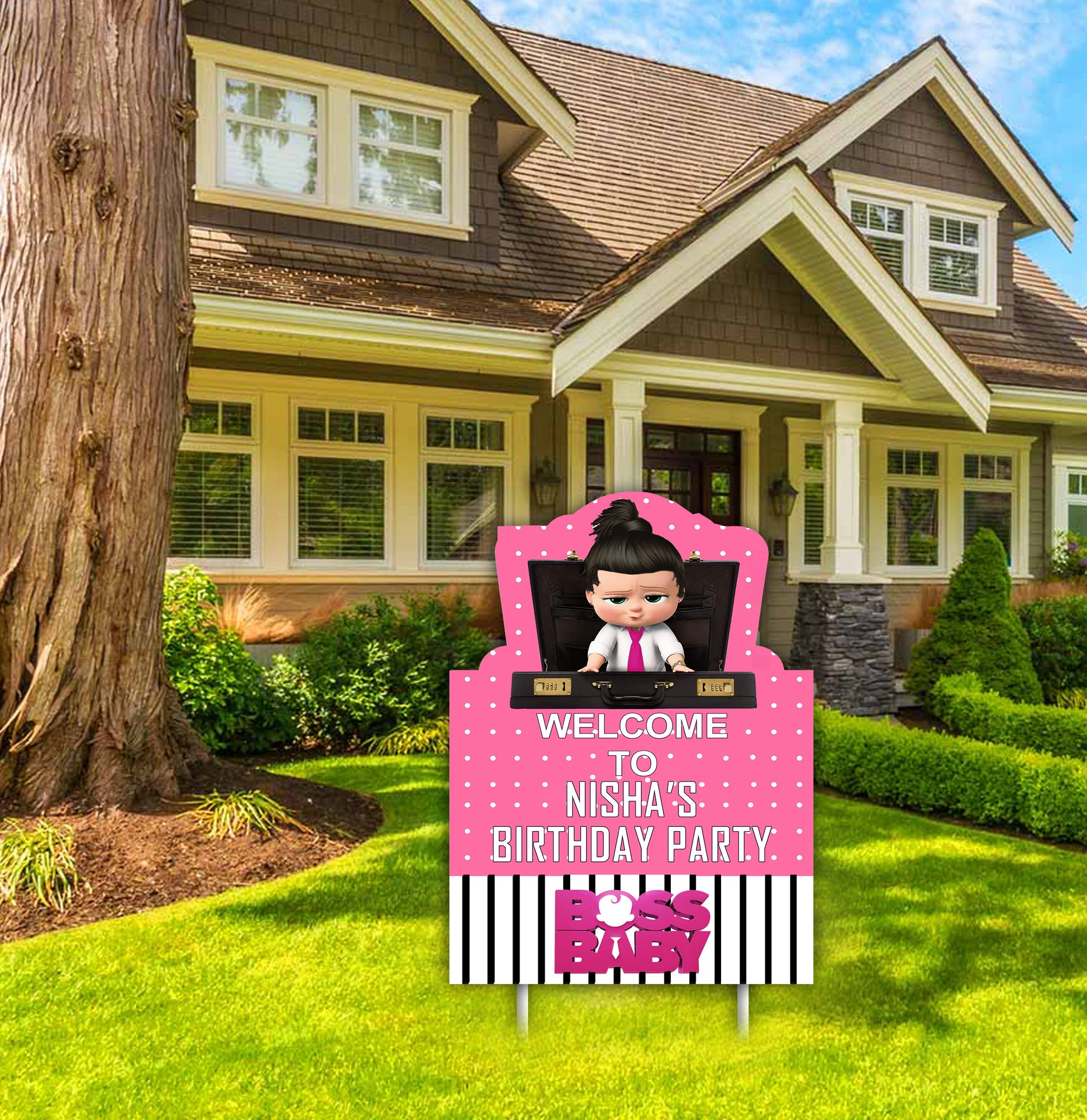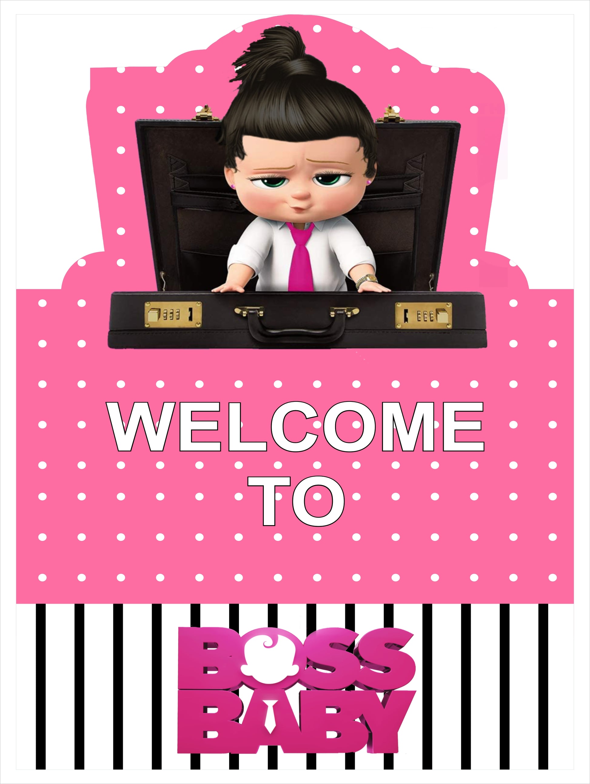 The Boss Baby Girl theme Welcome board sign is ideal for any home location or outside space. Welcome your friends and family members with a stunning welcome birthday party board.