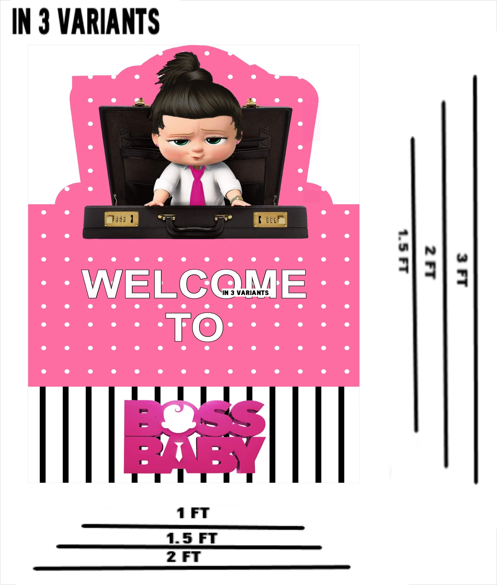 - Material: - Boss Baby Girl theme welcome signboard is made of high-quality vinyl print pasted on a 3mm sun board.