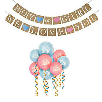- Pack includes one Baby Shower Banner and 20 Its girl Pink and Its boy Blue balloons with ribbons to hang up.