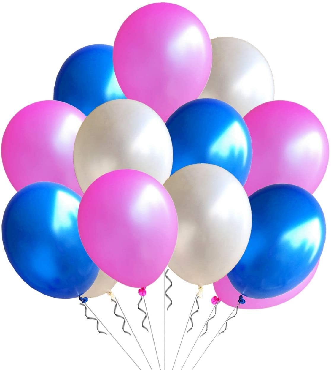 24 pcs Metallic balloon (6 Blue+6 White +6 White).The charming balloons are made of natural rubber latex and support helium and air excluded .