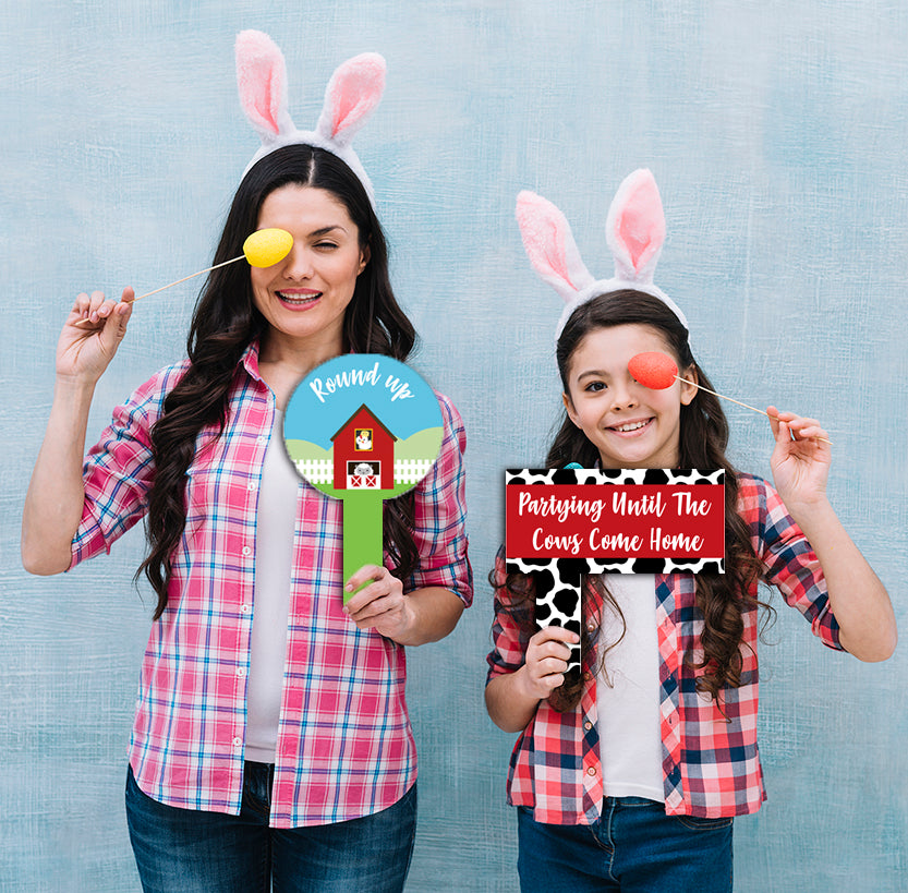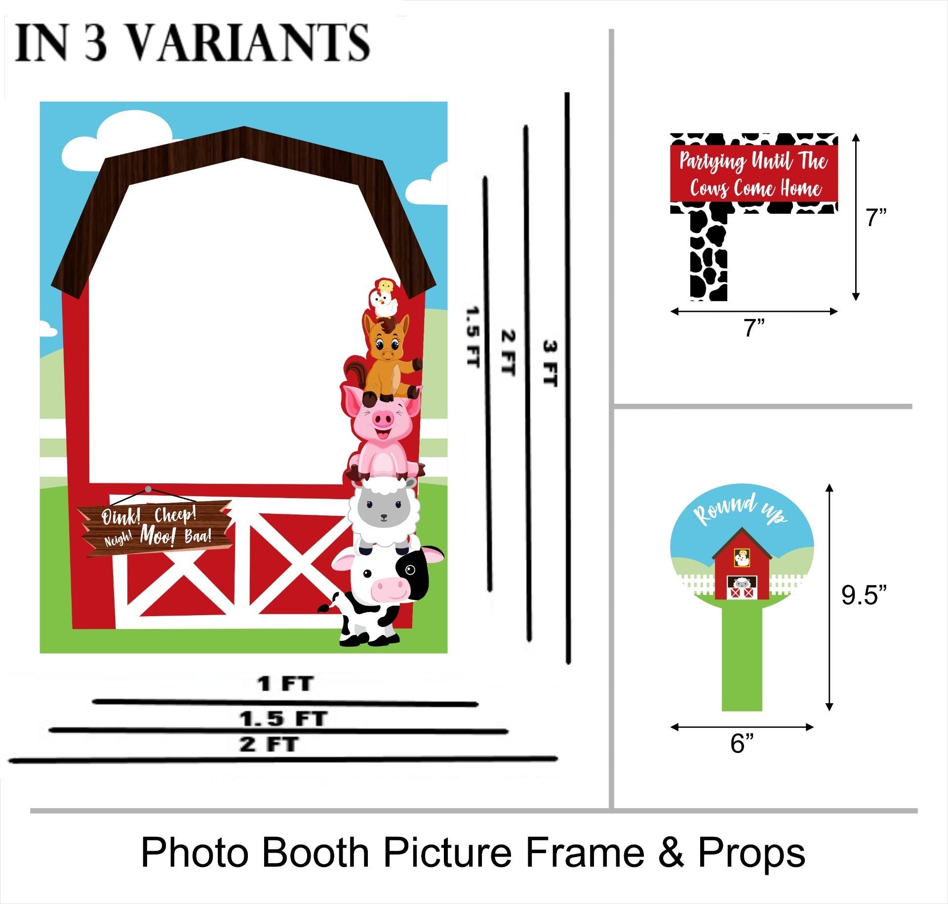Farm Animal Theme Birthday Party Selfie Photo Booth Frame & Props