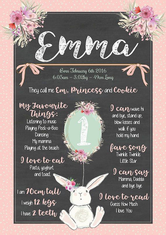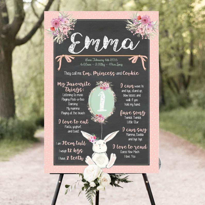 Bunny Theme Customized Chalkboard/Milestone Board for Kids Birthday Party