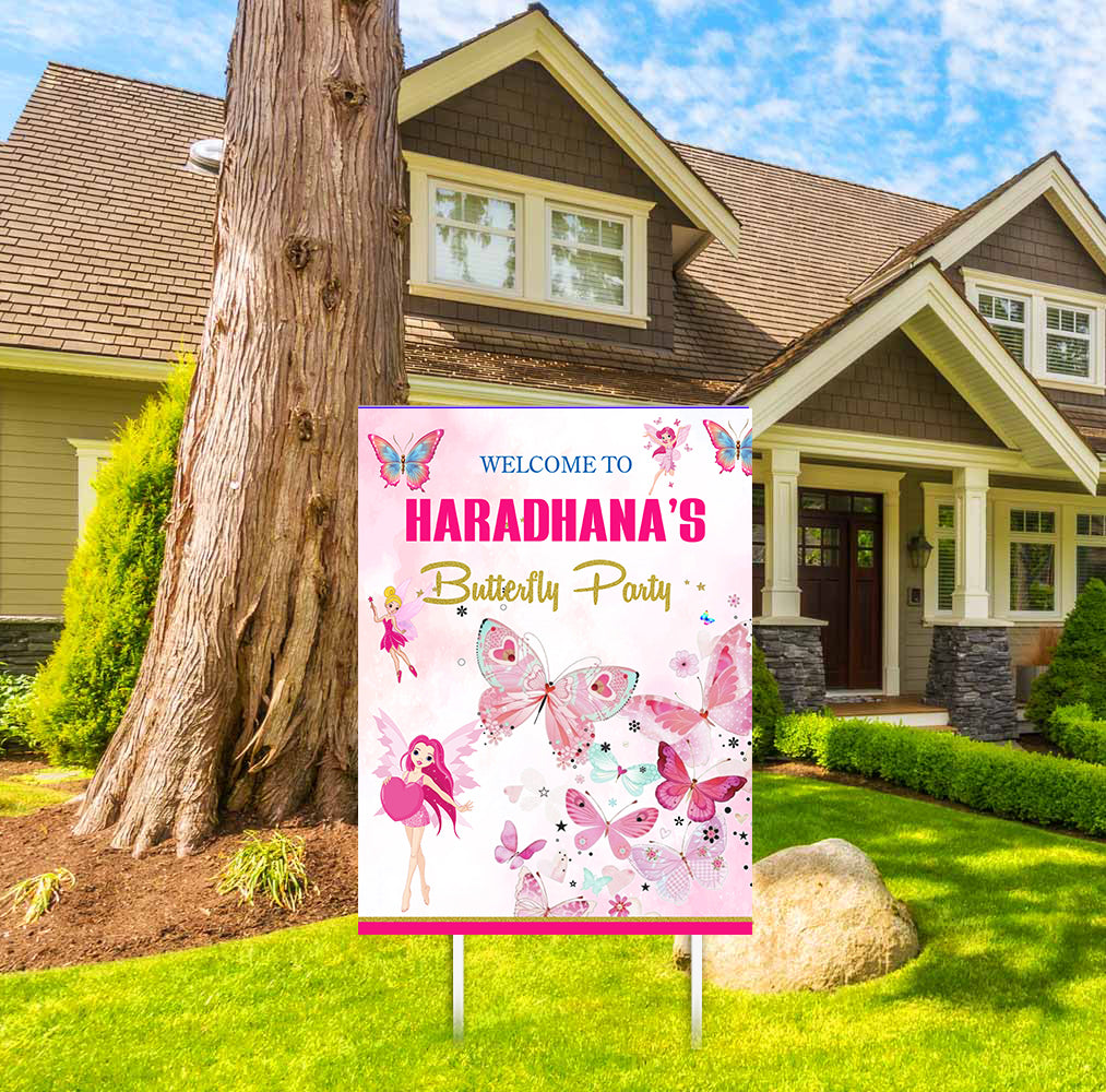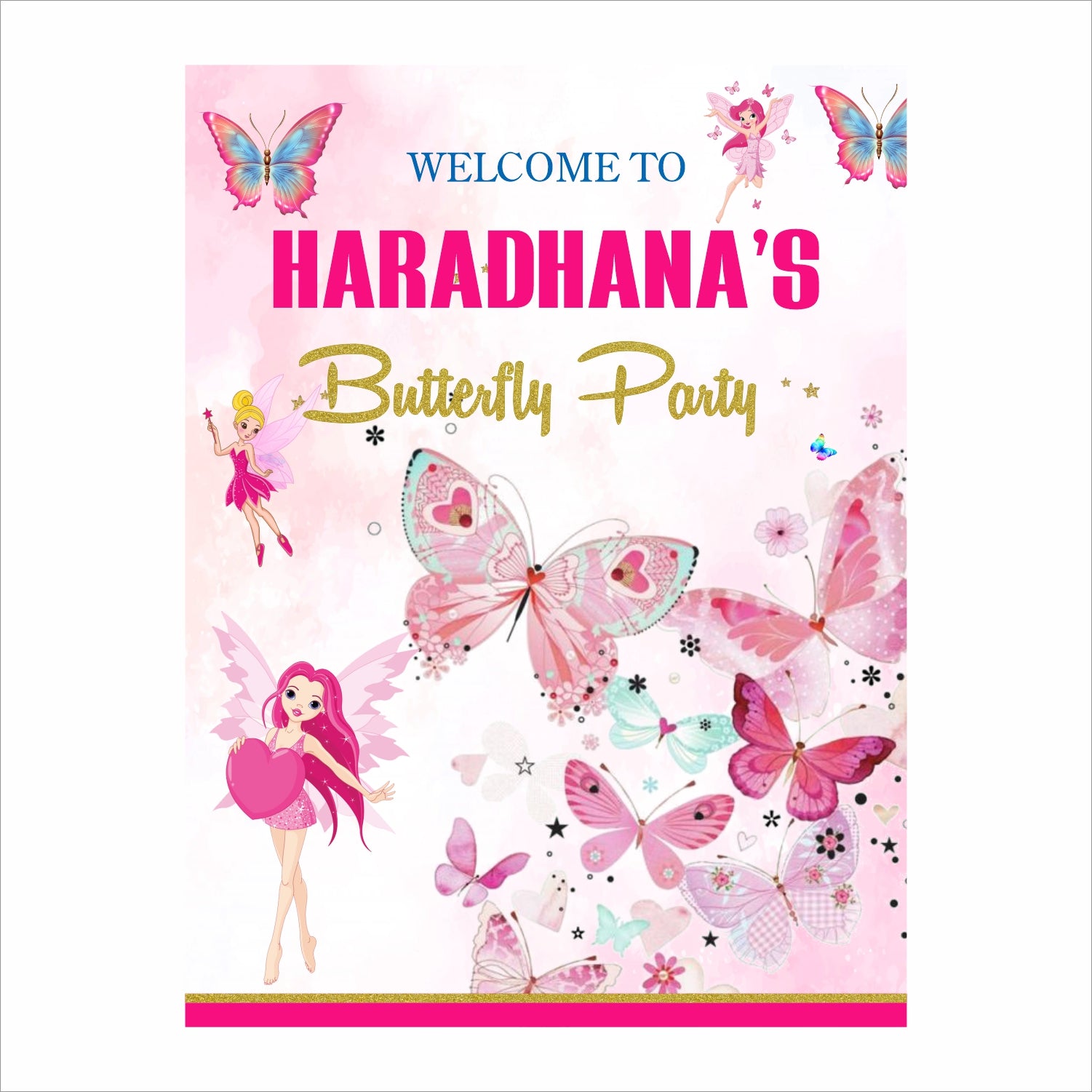 - Material: - Butterflies & Fairies theme welcome signboard is made of high-quality vinyl print pasted on a 3mm sun board.