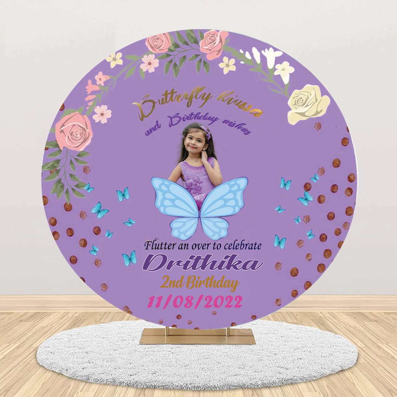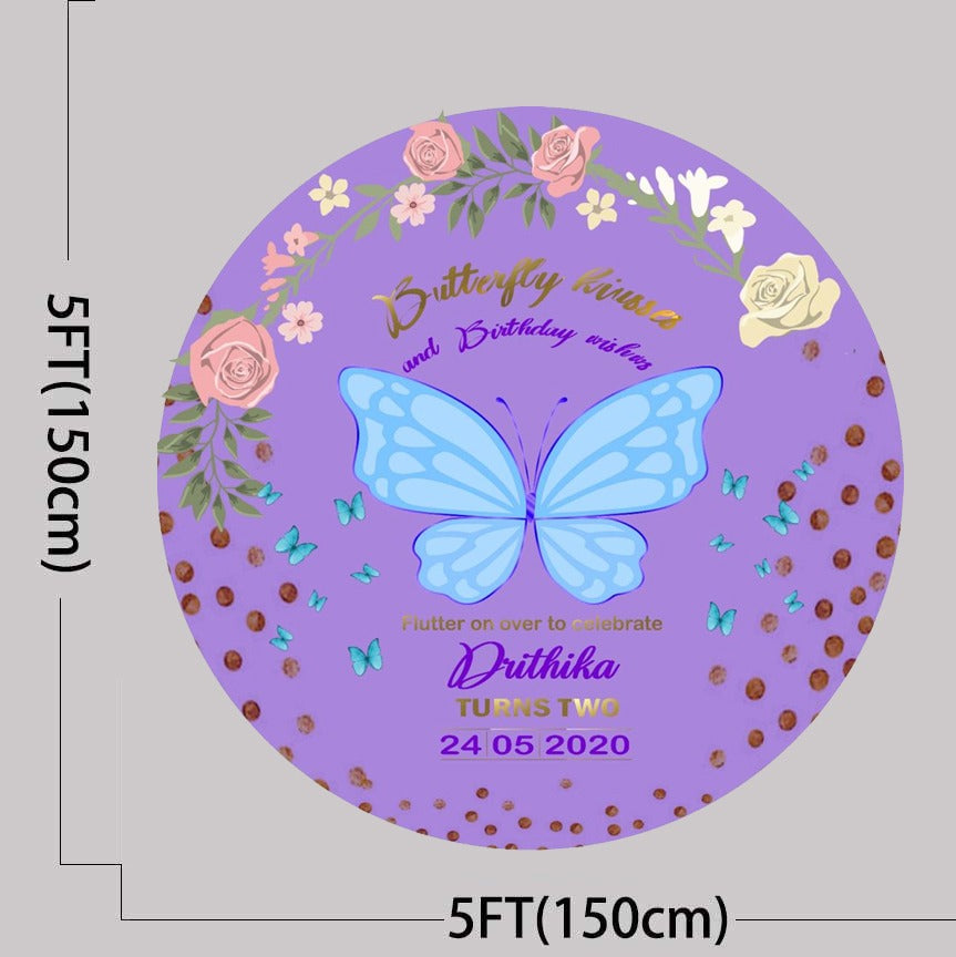 Butterfly Theme Round Birthday Party Backdrop