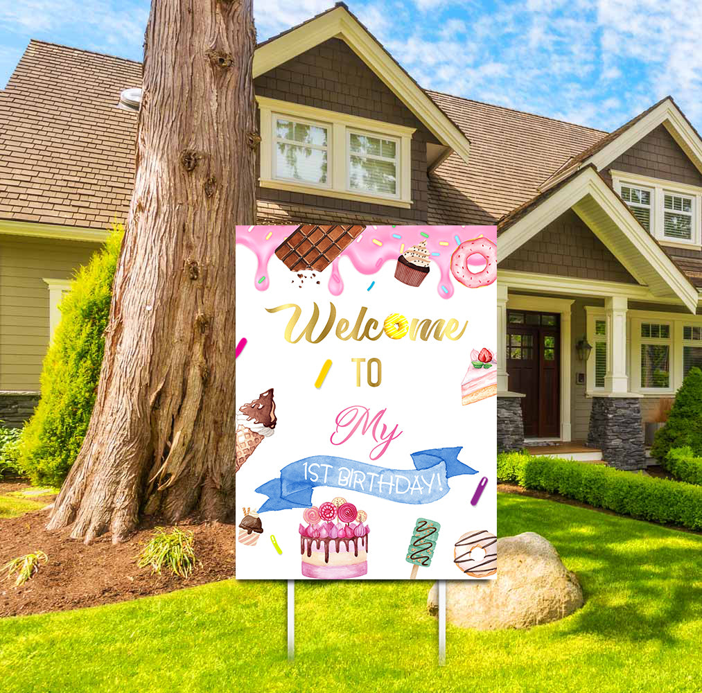 The Candy Land theme Welcome board sign is ideal for any home location or outside space. Welcome your friends and family members with a stunning welcome Birthday Party board.