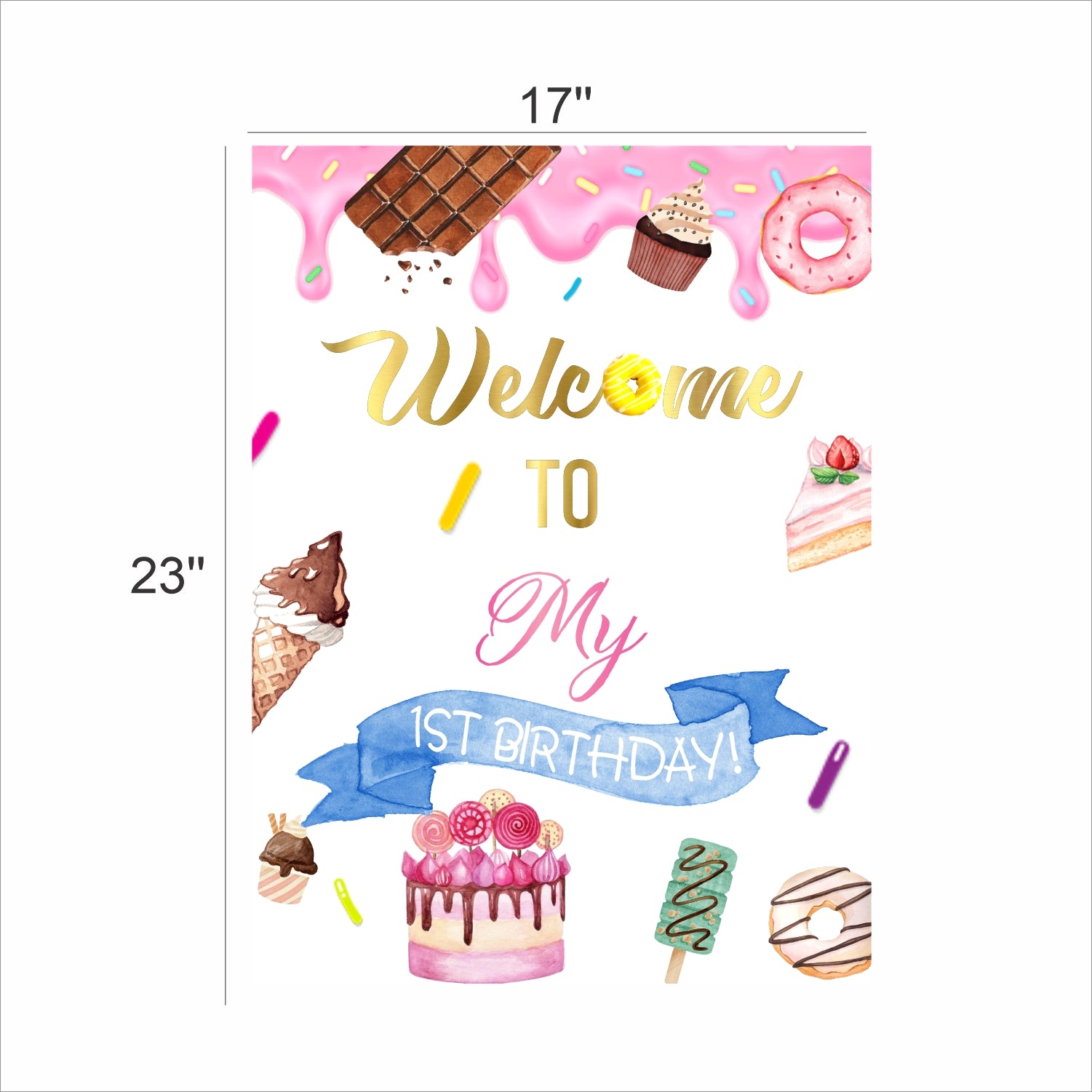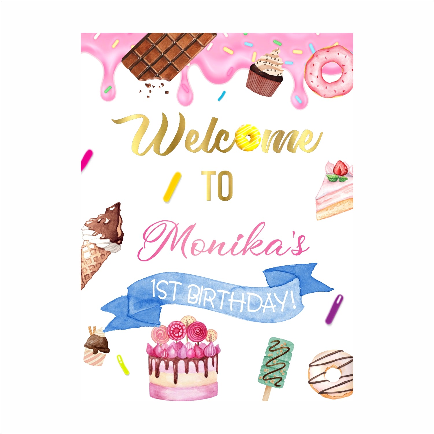 • Material: - Candy Land theme welcome signboard is made of high-quality vinyl print pasted on a 3mm sun board.