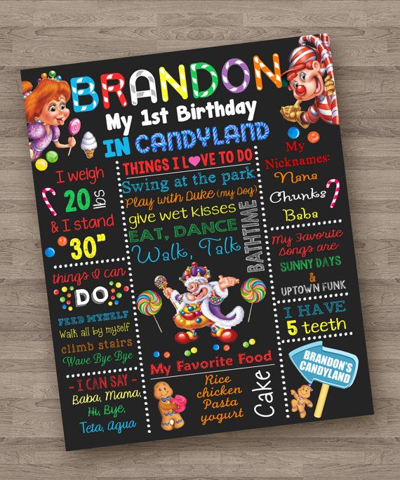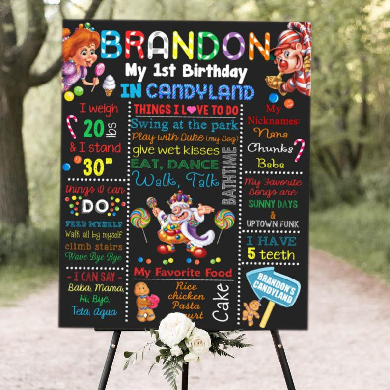 Candyland Theme Customized Chalkboard/Milestone Board for Kids Birthday Party