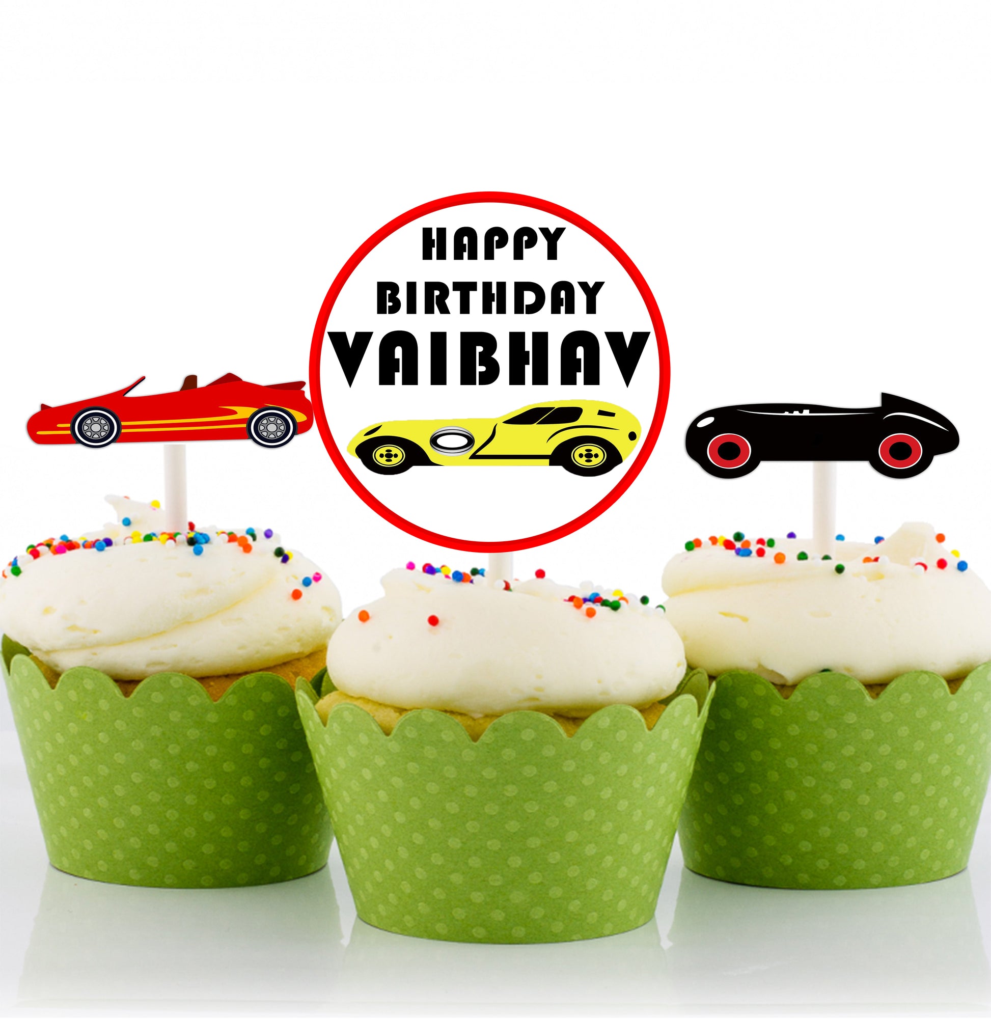 - Cars Birthday Theme Cup Cake Topper specially designed with three different designs.