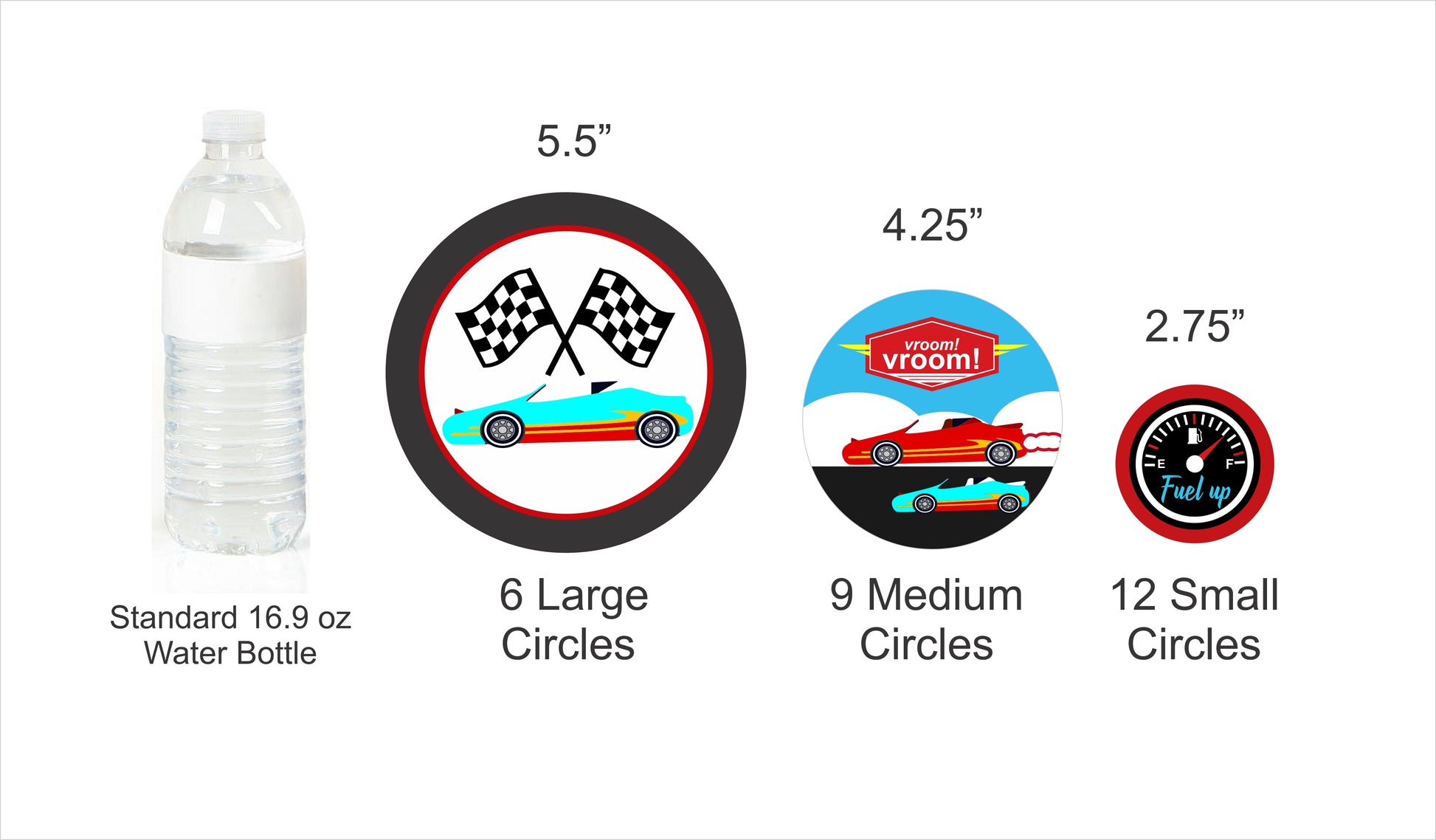 - Size: 2 Large Confetti – 5.5" party circles, 4 Medium Confetti – 4.25" party circles and 6 Small - 2.75" party circles.