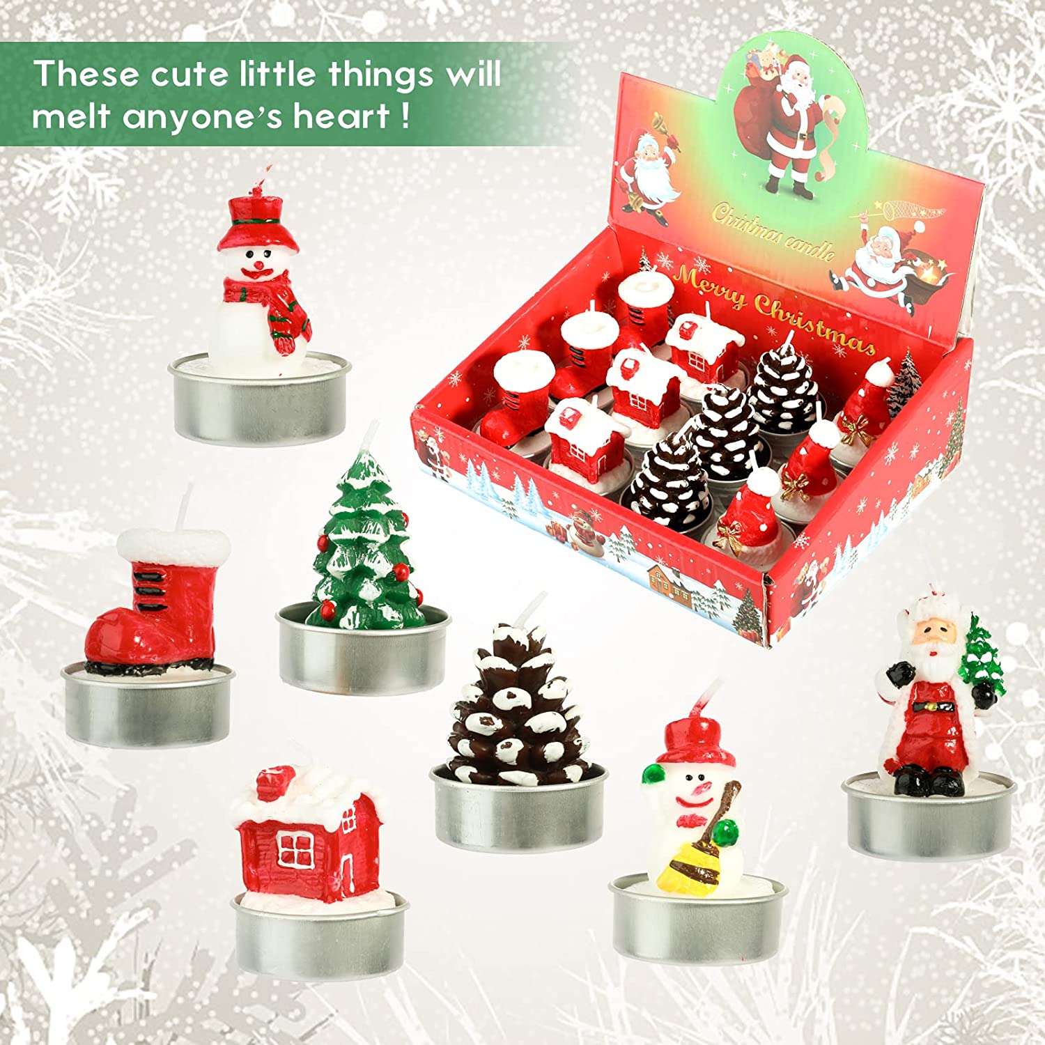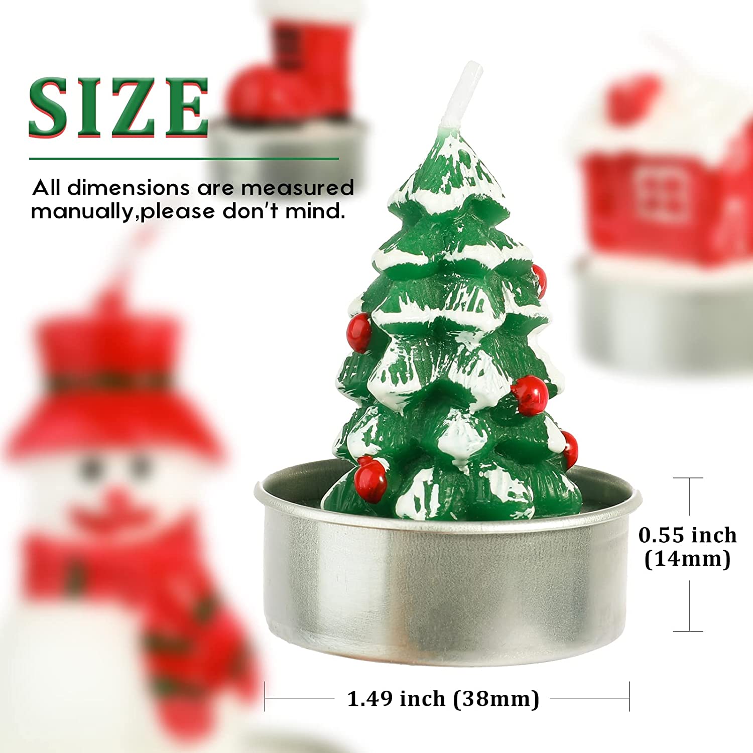 - Various Christmas Decorations: We have 4 types of Christmas element shapes, such as, Christmas tree, snowman, Santa Claus .Lovely decorative candles fit in metal tea candlesticks; Great choices for home decoration, Christmas decoration, festival, party, etc.