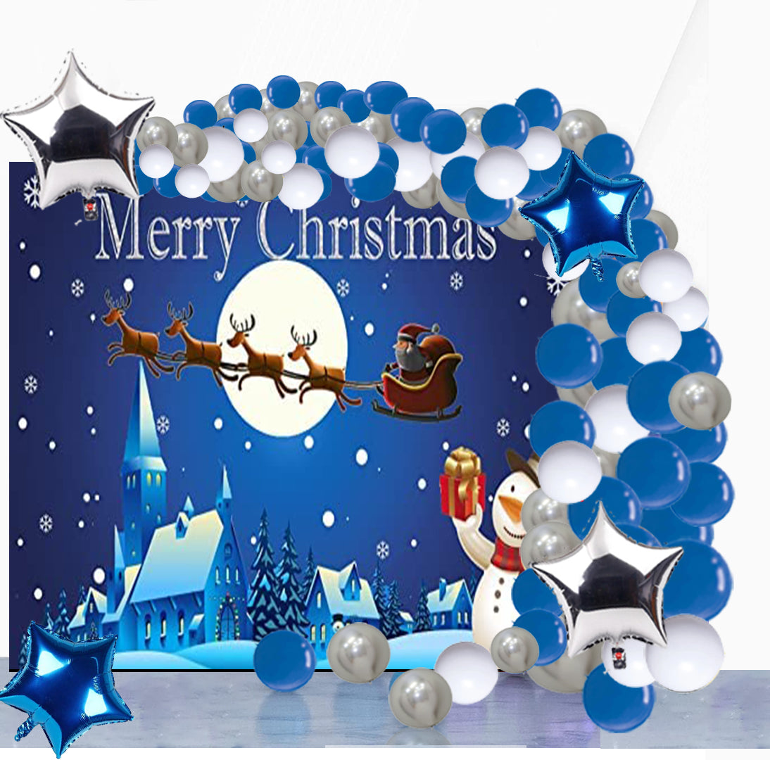 - PACKAGE: The decorations set includes: 4ft x 4ft backdrop banner made of high quality star flex, 40 Latex Balloons Blue and Silver, 5 pcs White Balloons, 4 pcs Blue and Silver Star Balloons.