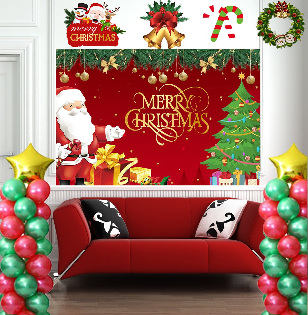 Christmas Party Decorations Kit - Backdrop, Balloons & Cutouts