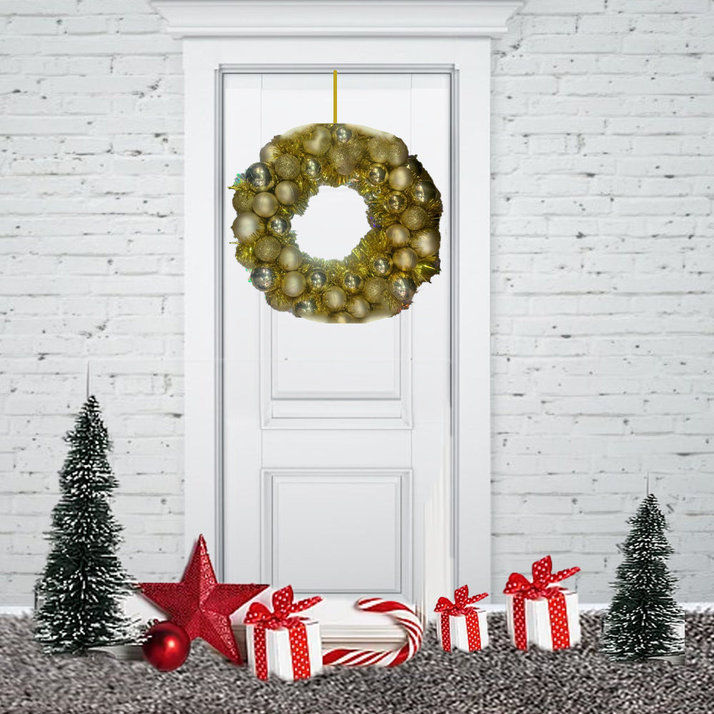 - Gorgeous artificial wreath, Decorated with glitter Balls and other beautiful ornaments.